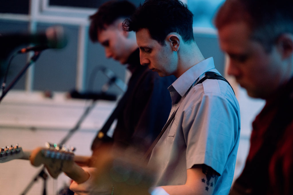 Favourites of course included Hotel Lux‘ breakout 2017 song “The Last Hangman”, mesmeric and intense played live, as well as many from the new album including “National Team” and set-closer “Eastbound and Down”. Frontman Lewis Duffin, his usual charismatic yet humble, lad-down-the-pub persona, delivered earnest vocals much in a spoken-word style. The appearance is a thrown-together new band, but this is a mature impressive sound with many great tunes in the back catalogue and the new album. The performance is exciting and captivating, including an acoustic segment, a little tambourine, a violin held together with gaffa tape, keyboards, and vocals from three of the band.