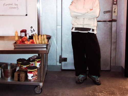 We’re at Philadelphia’s Brooklyn Bowl. We pass by security and staff, carrying trays of wings and curly fries, finding a small office with a spinny chair and a folding one. She takes the former, and I, the latter. We try to get comfortable, but in a room the size of a closet, we don’t have much of a choice.