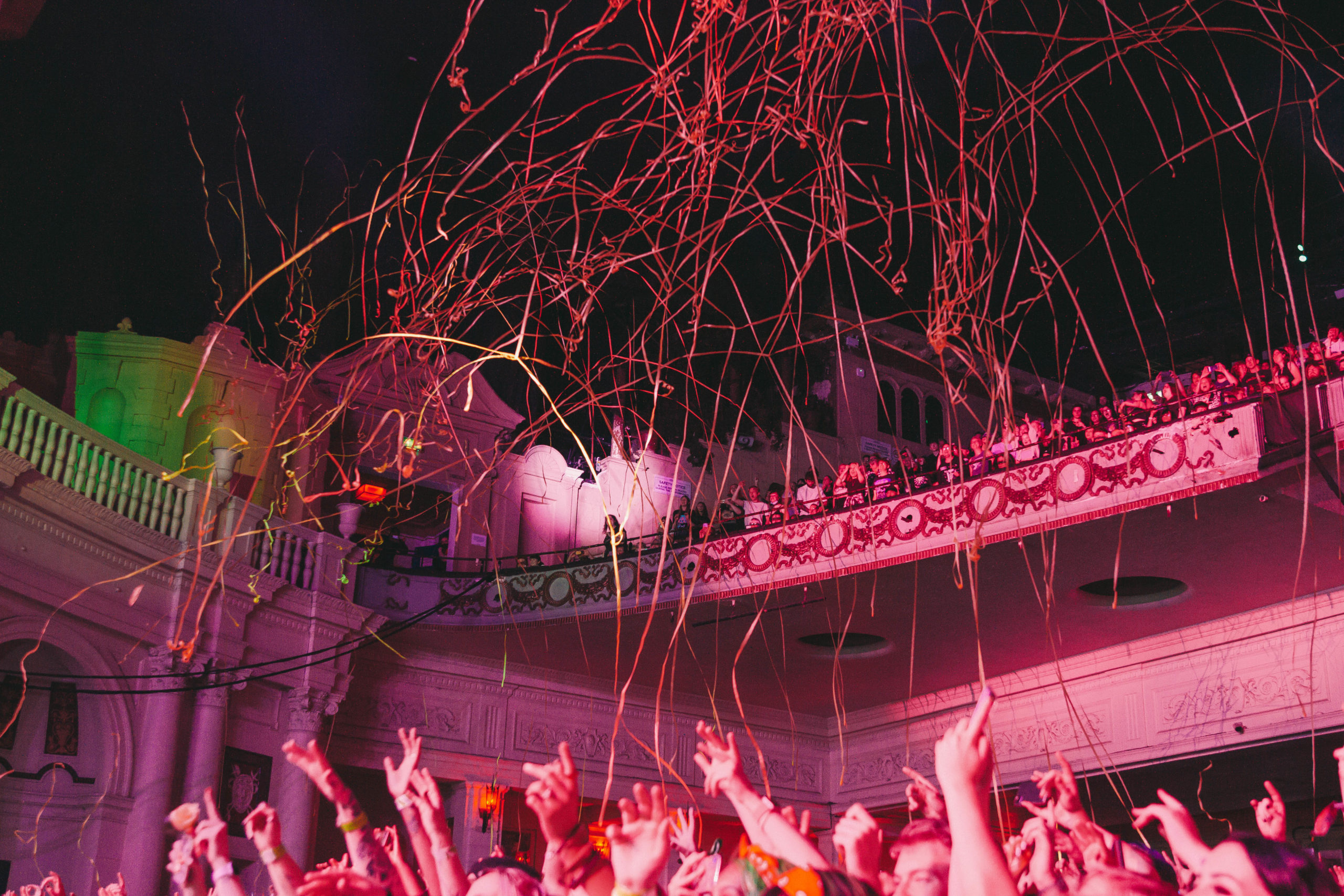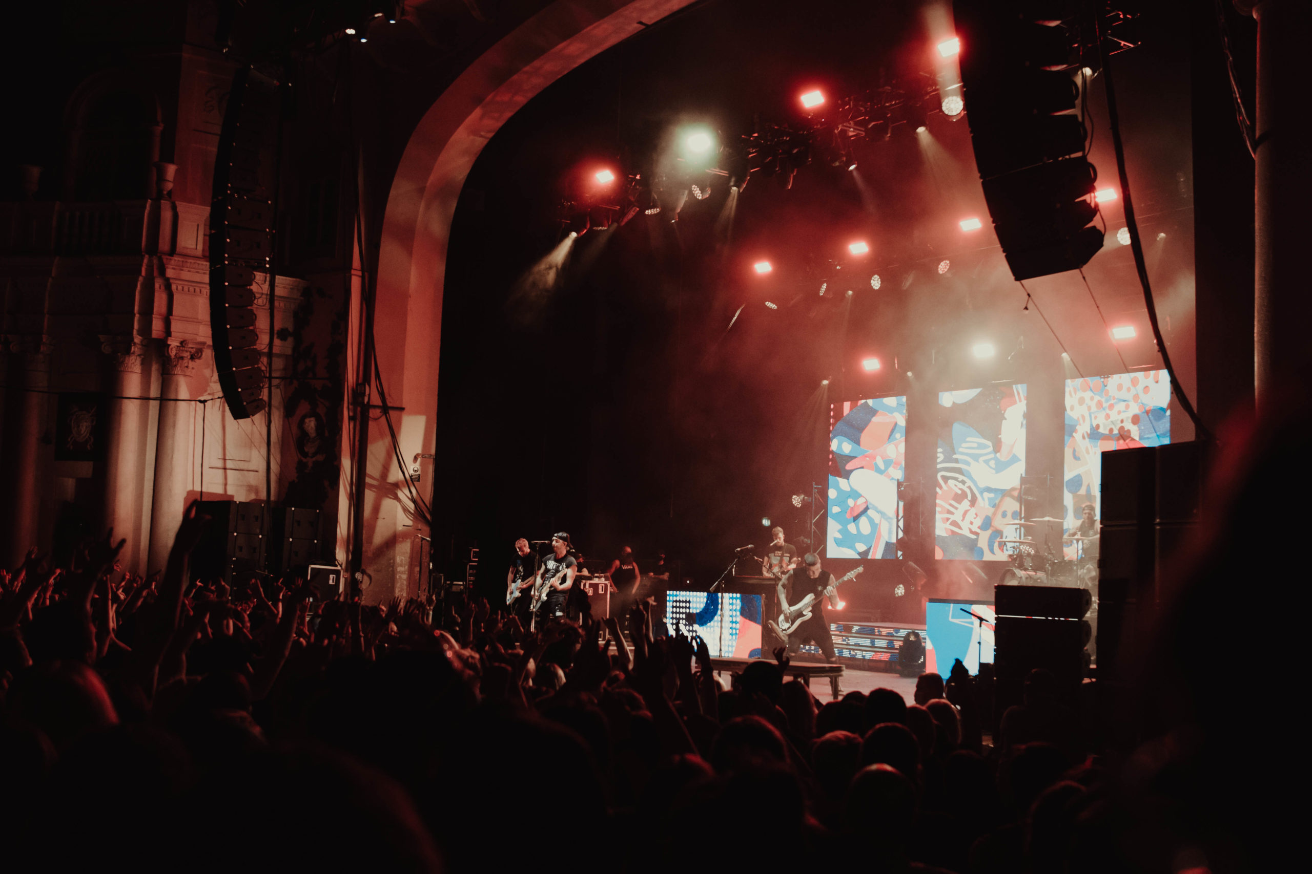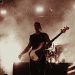 The crowd went crazy as the lights went down and were greeted by All Time Low’s stellar intro visuals, which were accompanied by a voice over from a futuristic artificial intelligence called Sharon. As the band walked out on the stage they began playing “Some Kind Of Disaster”. You could see how happy they were to be back on stage in London. Half way through the song confetti got sent out into the crowd, which surprised the fans. Jack Barakat and Zack Merrick were running from left to right of the stage, engaging with fans while playing the guitar/bass and singing where needed.