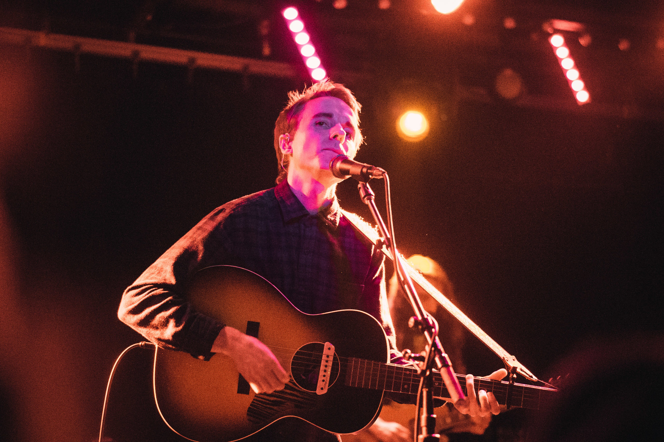 The beloved singer-songwriter Andy Shauf dropped by Birmingham, AL’s Saturn last week as a part of his Wilds world tour supporting his 2021 album of the same name. This date was notable because it had been on the calendar for over two years — when it was originally announced in the winter of 2019, singer-songwriter Faye Webster was supposed to open the show up. As you might recall, we saw her sell out this same room last month, which is evidence of how the world has changed since Shauf was due to come to Birmingham. The wait was well worth it; beginning his set with “The Neon Skyline” off of 2020’s remarkable album of the same name, the set was a breezy, uplifting journey through his acclaimed discography. Whereas at previous dates we’ve seen Shauf was mild-mannered and hardly spoke to the audience, he seemed to be in delighted spirits throughout the night as he reflected on his past times playing Birmingham and frequently drew the audience into his style of world-building lyricism that he’s been handcrafting since his debut. His backing band was skilled at bringing those worlds to life, with a heavy emphasis on the Rhodes organ and clarinet transporting listeners to the titular Skyline bar that Shauf’s characters frequent. Opening the show was Shauf’s ANTI- labelmate Yves Jarvis, who brought his unique style of acoustic songwriting to an awestruck crowd. It was one of the more impressive feats I’d seen, as it takes skill to silence a crowd of 200 people as an acoustic act; Yves Jarvis did this expertly, and with rumors of a record coming this spring, he’s one to definitely keep your eye on. Find our photos of the evening below: