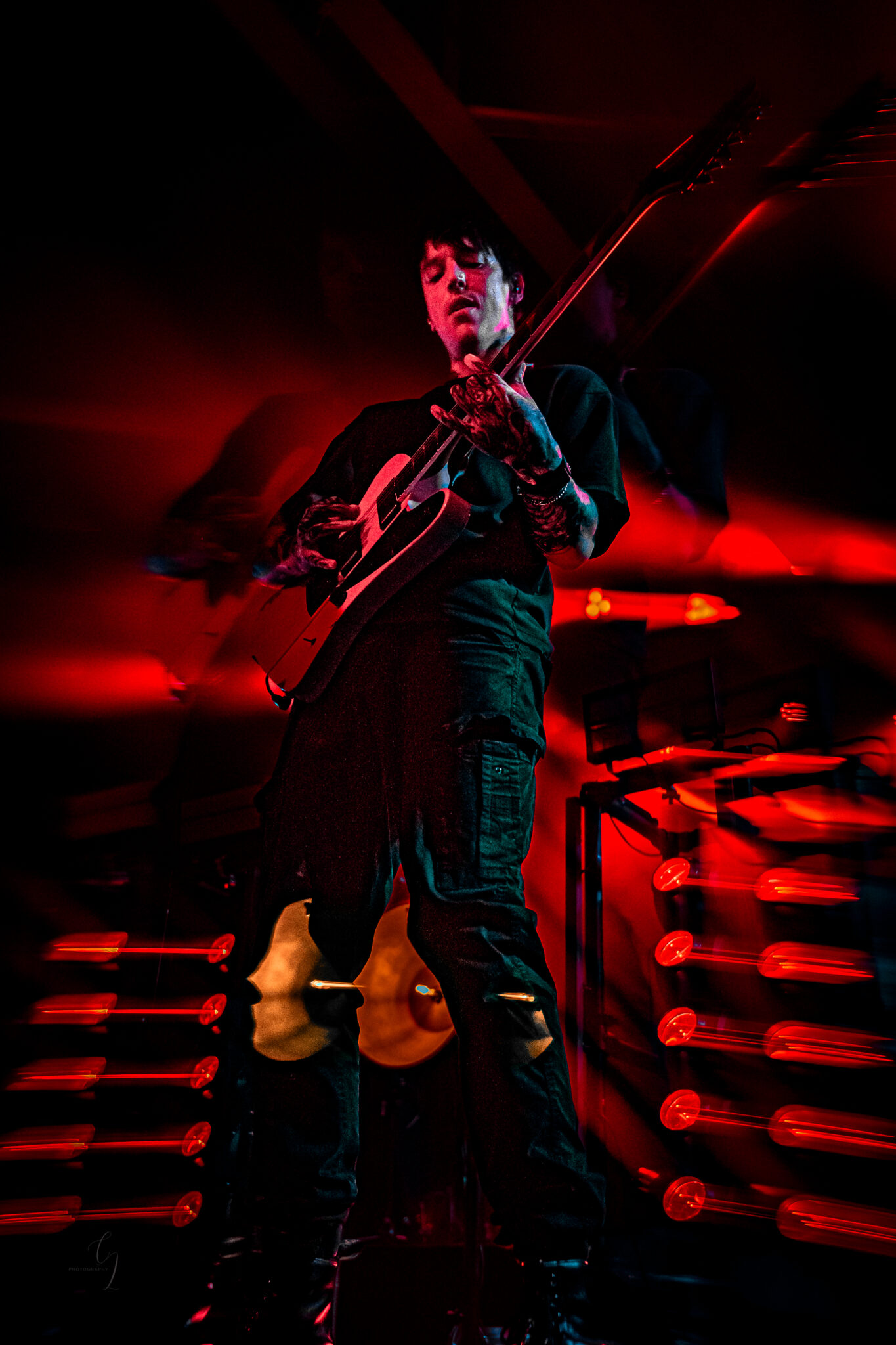 Next up was Erra, and the shift was instant. They came out swinging, loud and gritty, drenching the room in a wave of technical precision and heavy emotion. “Slow Sour Bleed” had the pit moving with full force, while “Cure” felt like a sonic gut punch in the best way possible. From a photographer’s perspective, their lighting and movements were a dream with their pure chaos in rhythm, and the crowd was living for it.