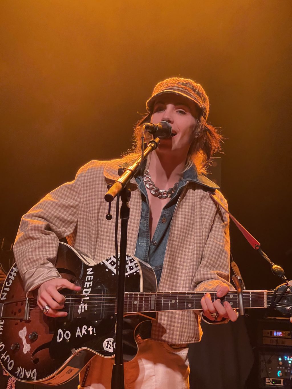 The first act of the night was Baby Fisher. He walked on stage, carrying himself high and wearing an outfit of a cabby hat, bell bottom jeans, and a jacket out of the 70s. He played a mix of indie pop songs, indie folk songs, and even threw in a blues song he used to play in a blues band. His swagger on stage left the audience wanting more. This eclectic mix of genres kept the audience on their toes and got them excited for the next act.