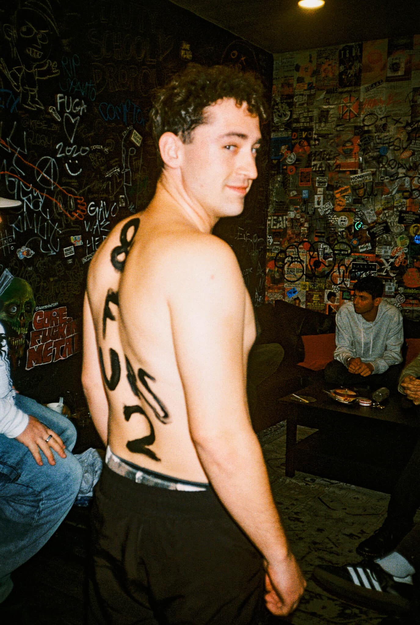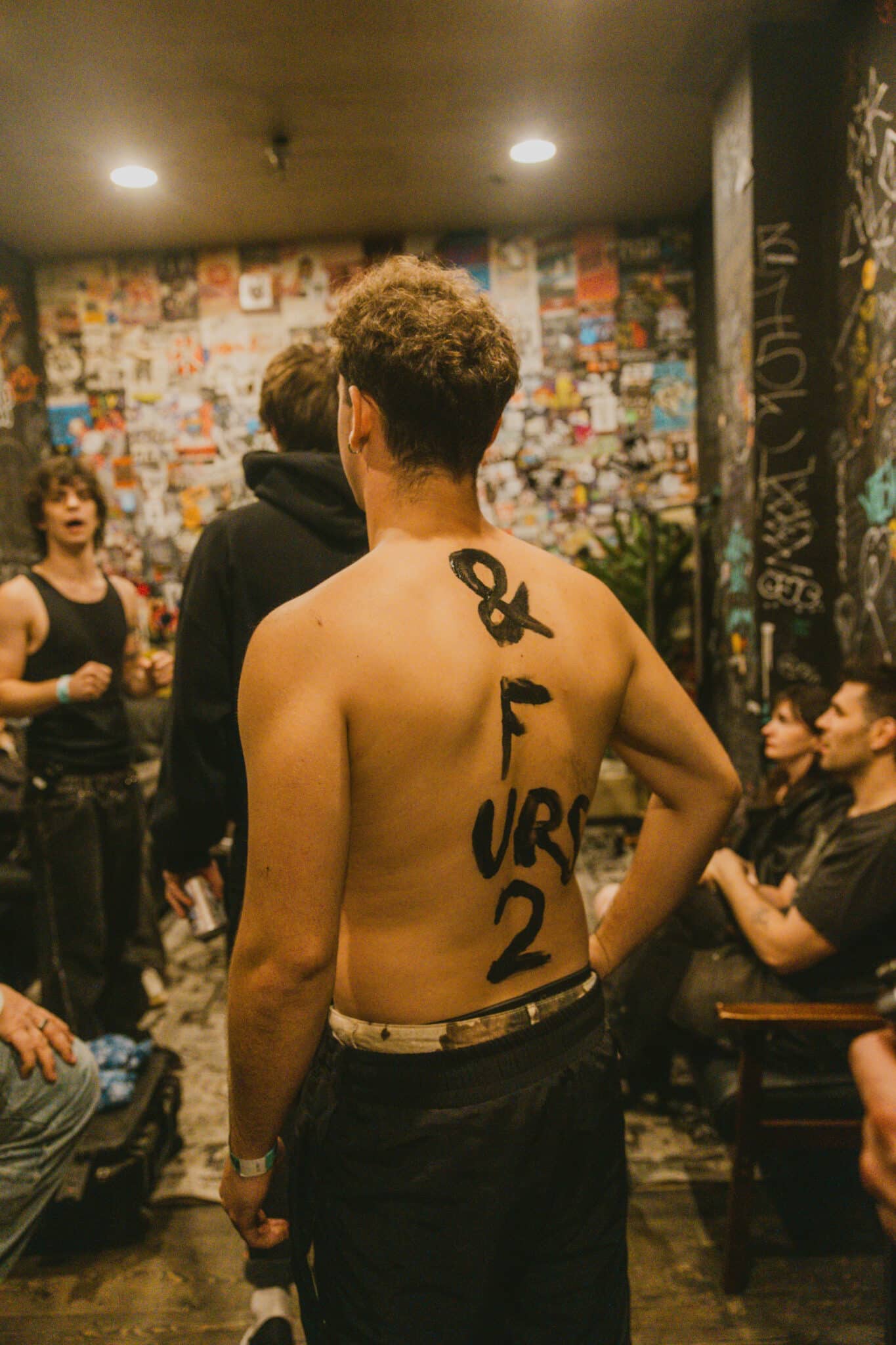 After Ezra wrapped his energetic and talented set, Bales quickly hit the stage and ripped off his shirt to reveal he had painted “FML” on his body.. in true Bales fashion.