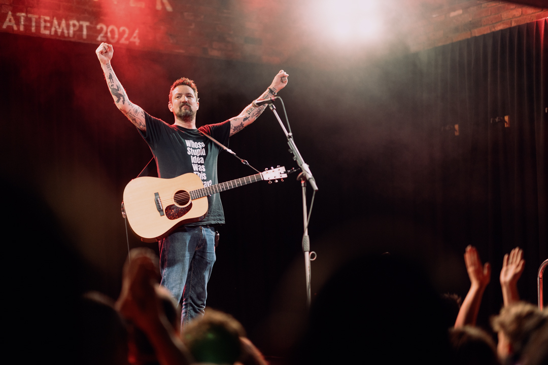 Frank Turner has set a new world record for the most concerts performed in 24 hours in different cities; 15 shows at independent music venues across the UK, all ticketed by independent record shops, both of which he firmly champions (encouraging the crowd to support live music, take a punt on whoever is playing next week, as he finished the show). Rules required a 20 minute set to at least 25 audience members; no issues there as each show was sold out. The endeavour was to support the Music Venue Trust and as a celebration of his tenth album, Undefeated, released this week. The English folk-punk singer is no stranger to epic endeavours, having last year played in all 50 American states in just 50 days, and with his 3000th headline concert scheduled for early 2025.