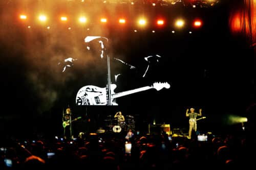 Blink-182 closed out Innings Festival with the kind of cross generational crowd energy that only a band with their history can pull off. You could see it in the audience kids, longtime fans, and people who have been listening to them since the beginning all standing side by side, ready to sing along. The band leaned into their signature humor, cracking jokes between songs and keeping the mood light and fun while still delivering the big, nostalgic rock energy people came for. The whole set just felt exciting in that easy, celebratory way where everyone knew the songs and wasn’t afraid to shout them at the top of their lungs. It was a perfect way to close out the festival, leaving the crowd energized, happy, and riding that post-festival high.