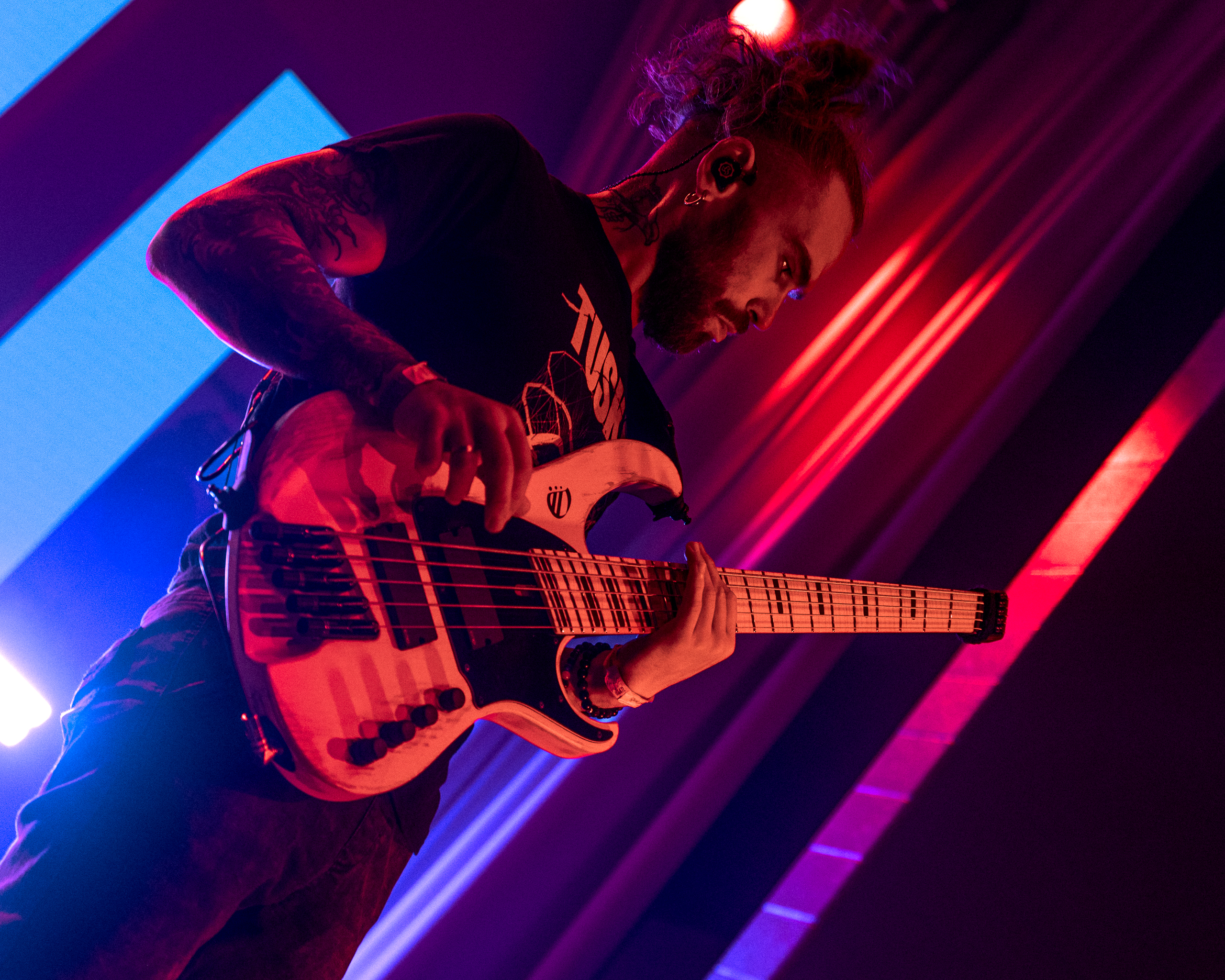 Monuments took the stage first, unleashing their monumental energy, living up to their band name’s reputation. They opened with “Cardinal Red,” led by Andy Cizek and the rest of the quartet, and transitioned seamlessly into the face-melting riffs of “I, the Creator.” The stark contrast between these opener tracks showcased the British shredders’ versatility, met with thunderous applause from the audience. The crowd’s headbanging reception never waned as the band powered through their eight-song setlist. Moshpits erupted as Adam Swan and John Browne on bass and guitar, respectively, commanded the stage with heavy riffs and basslines that enthralled the audience. Mike Malyan’s thunderous drumming kept the tempo for this electrifying performance. Monuments’ set was truly monumental, igniting a frenzy that endured throughout the evening.