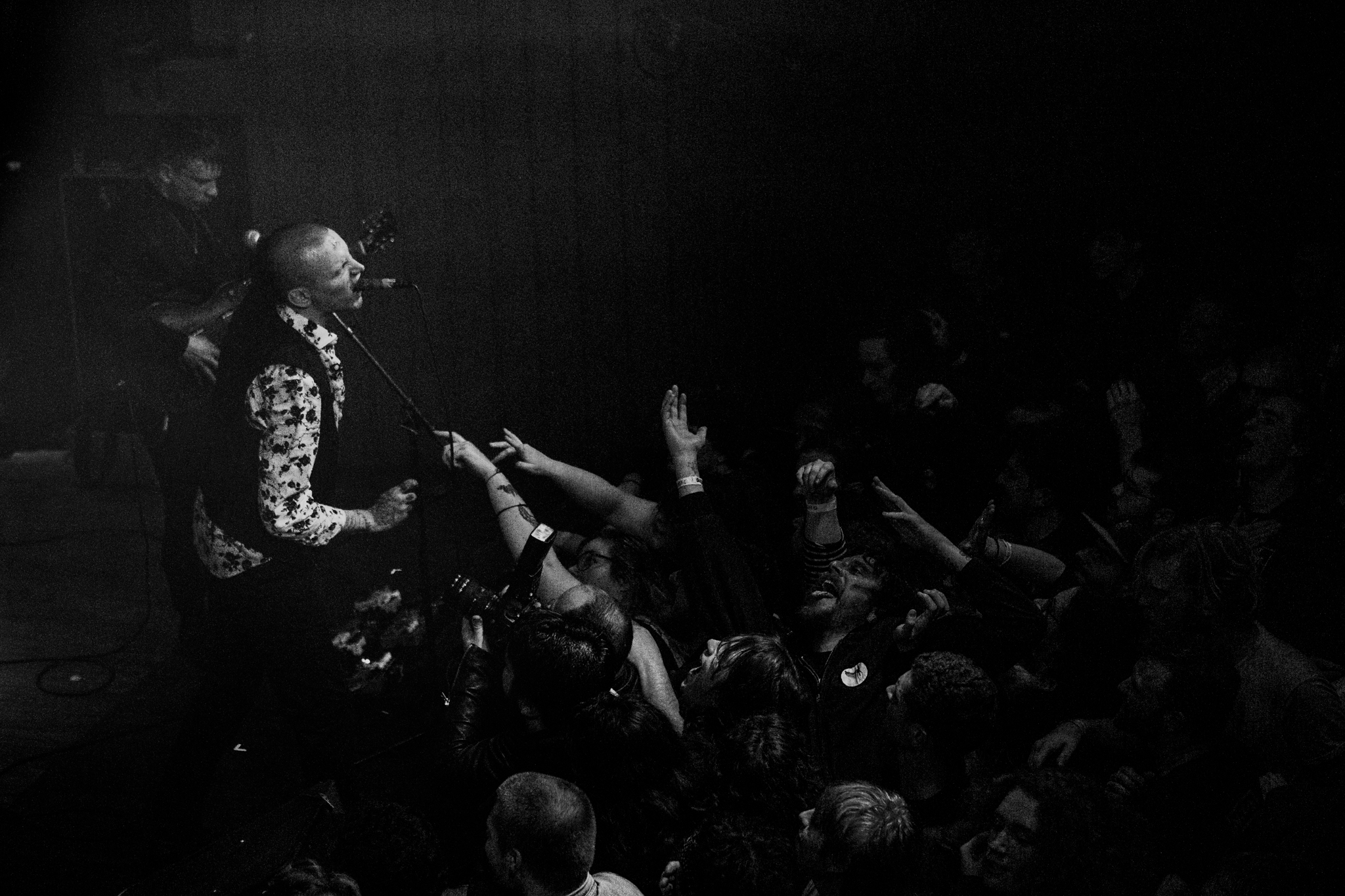 The fans hung off of his every word, shouting the refrain back. As this repeated endlessly, Marshall dove back into the arms of the adoring fans, making his way to the very back of the venue to the sound. Like that, the set ended, and normalcy was attained — but for a span of 70 minutes, all were beholden to Daughters. Check out our photo coverage of the set below: