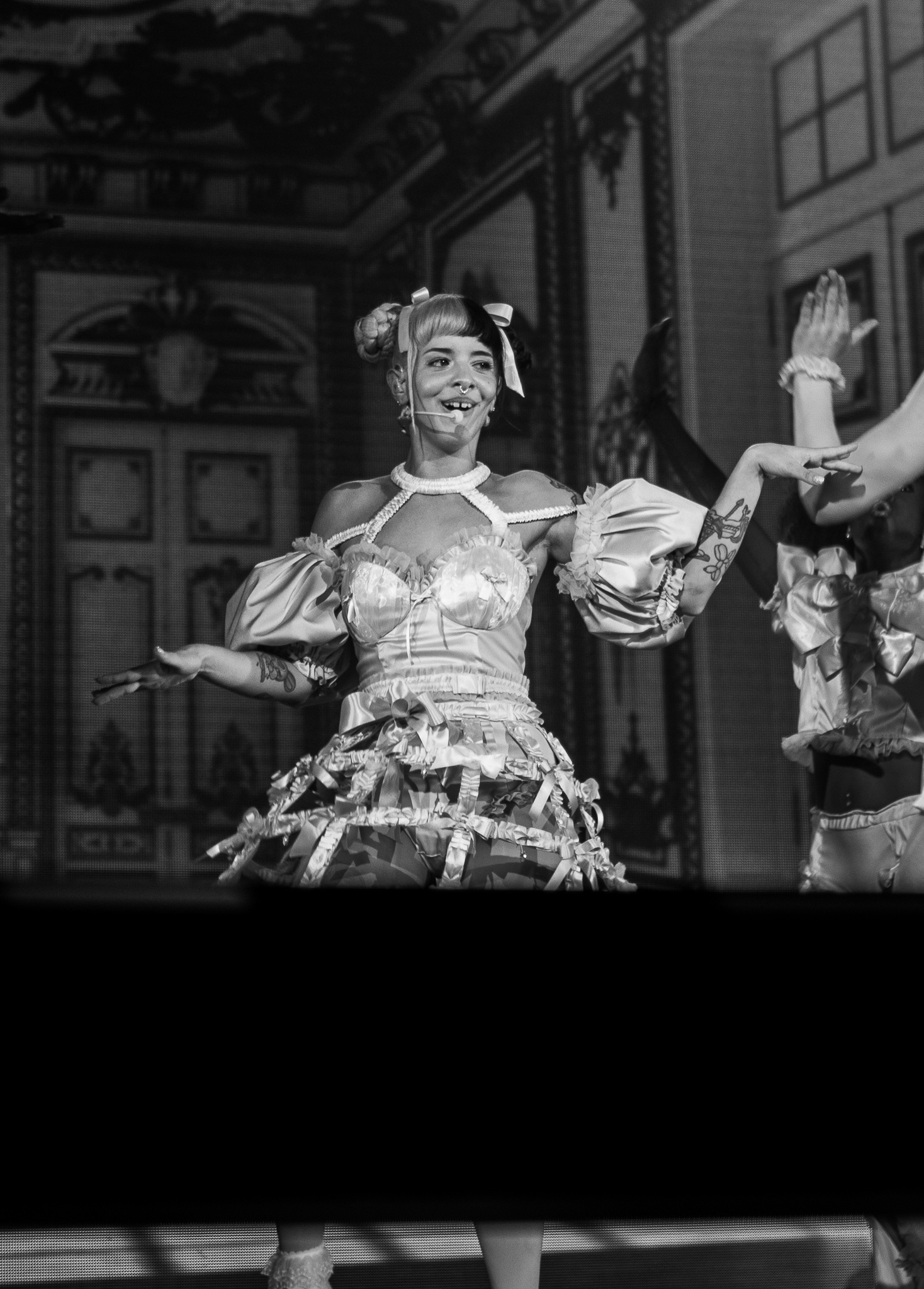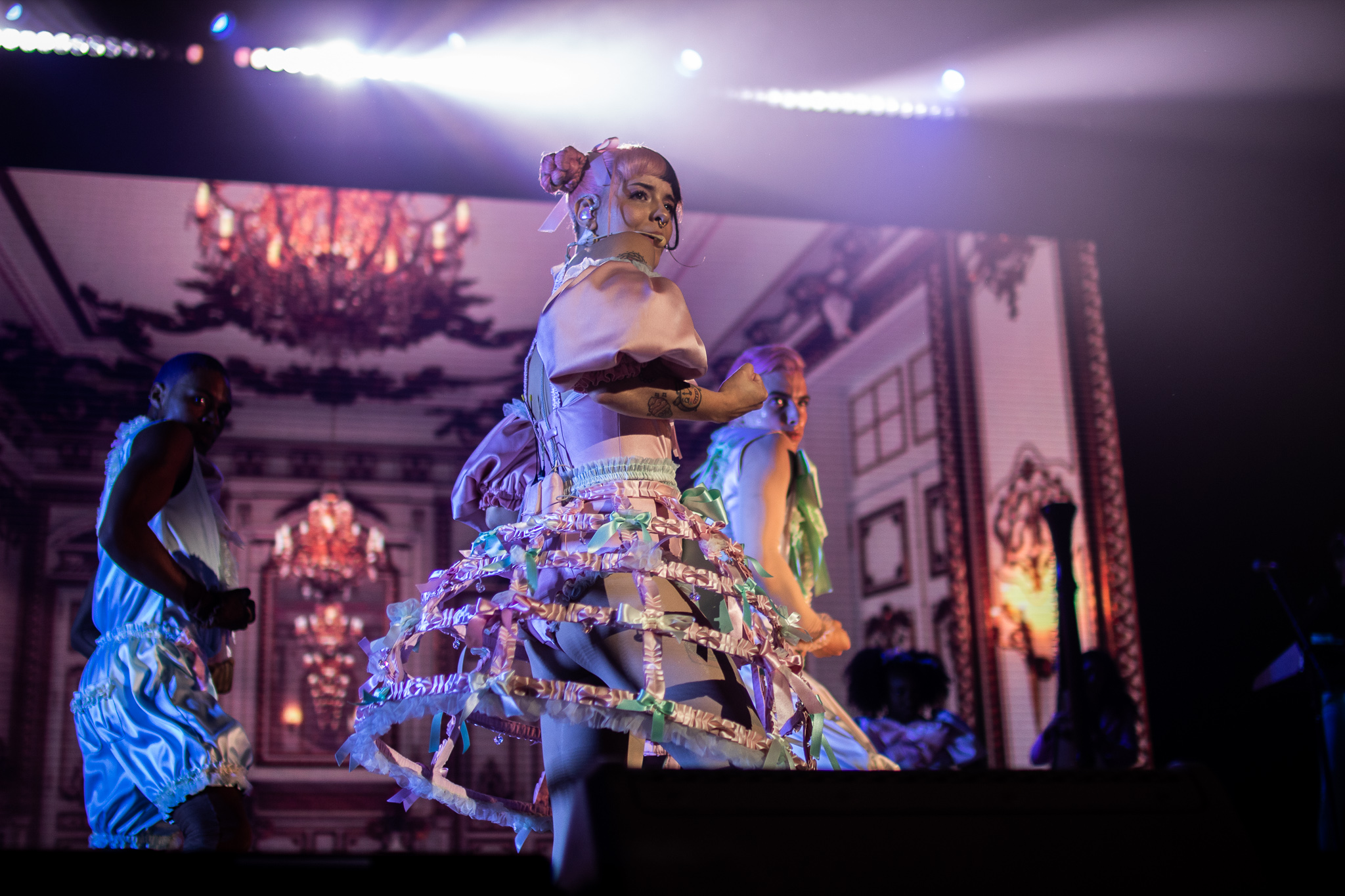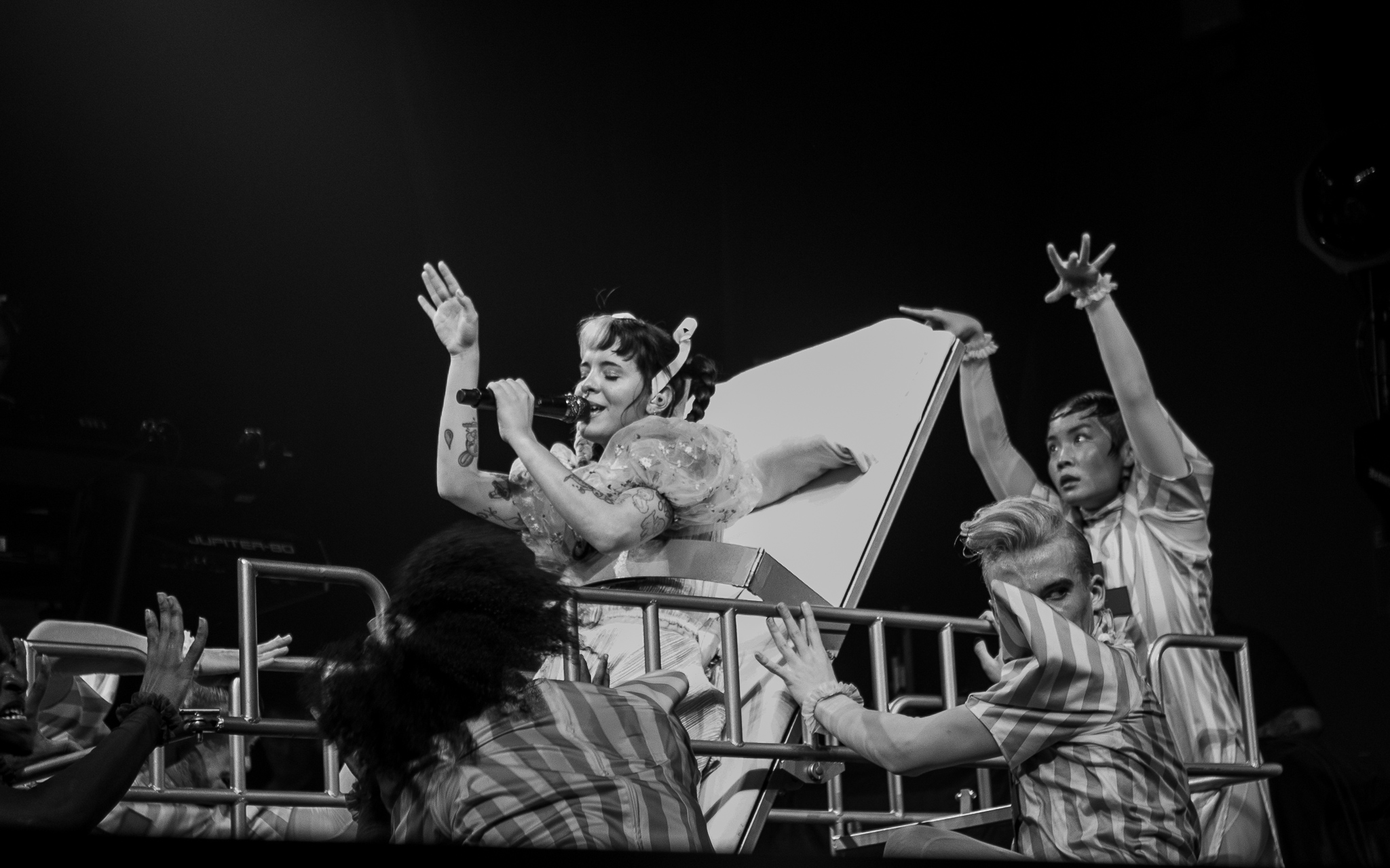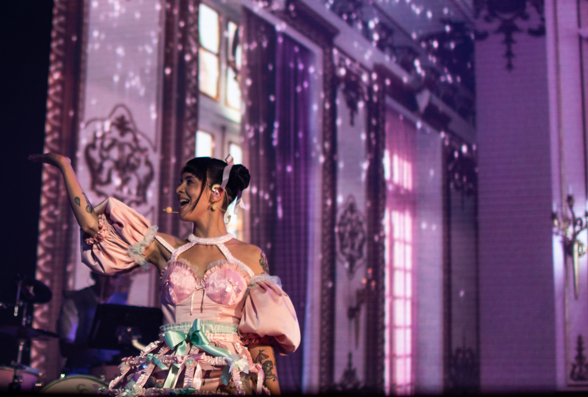 After ‘Show and Tell’, Melanie came out with another visually impressive performance of ‘Nurse’s Office’. Everyone had changed outfits and Melanie got onto a hospital bed to preform this song as footage from the movie played in the background. With the scenes from ‘K-12’ playing, it truly felt as if you were teleported in the movie once more, creating a unique experience for everyone in attendance.
