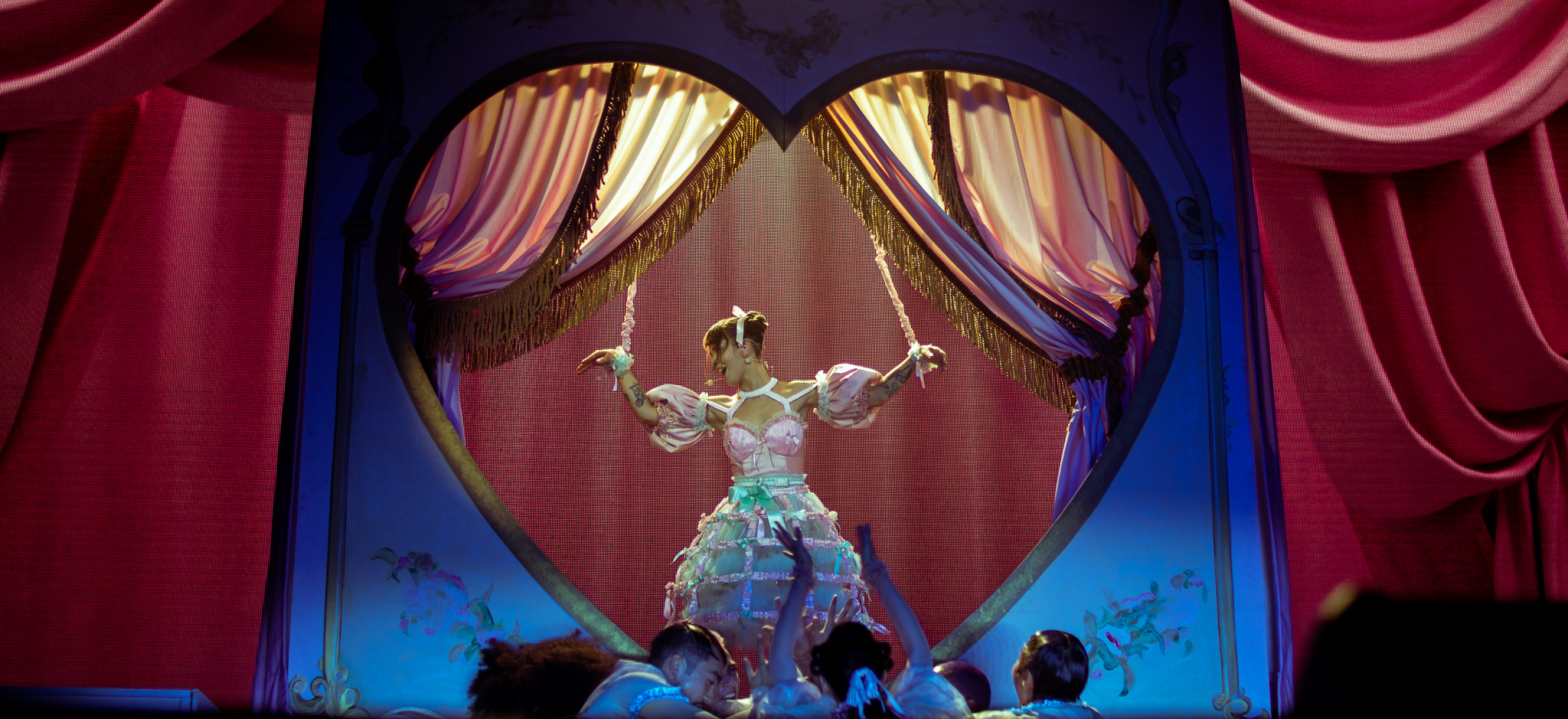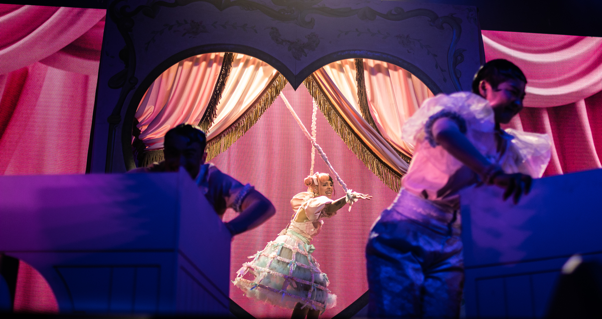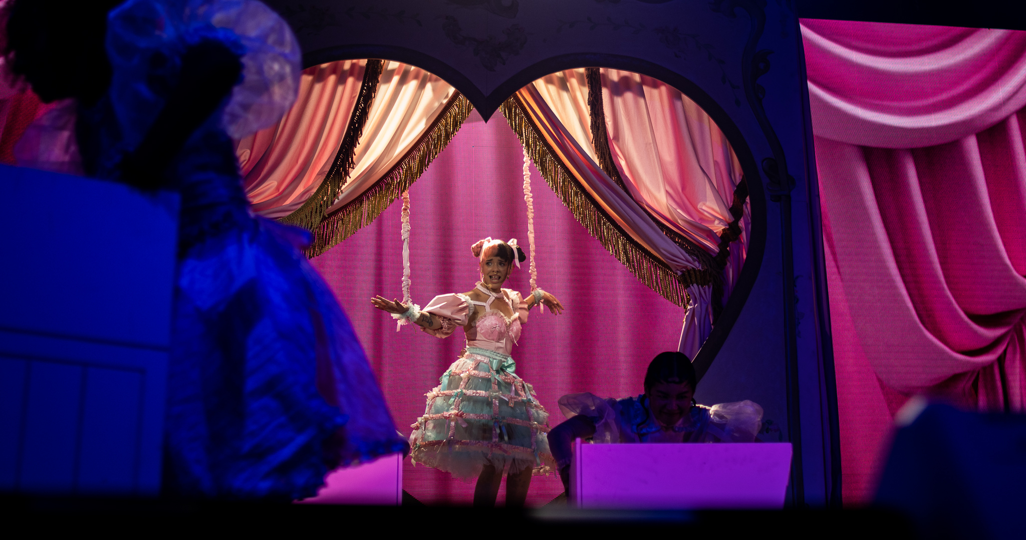 After a short change in between songs, Melanie came onto the stage after ‘The principal’ to play one of the most popular songs off of the album, ‘Show and Tell’. Melanie came out on a heart shaped stage fashioned as a sort of marionette, and did the iconic choreography from ‘K-12’. The crowd enthusiastically sang along as Melanie and her dancers preformed the song, and some people in the crowd even attempted to dance along to the choreography. The song was fantastic live and the set design was practically identical to that of the movie.