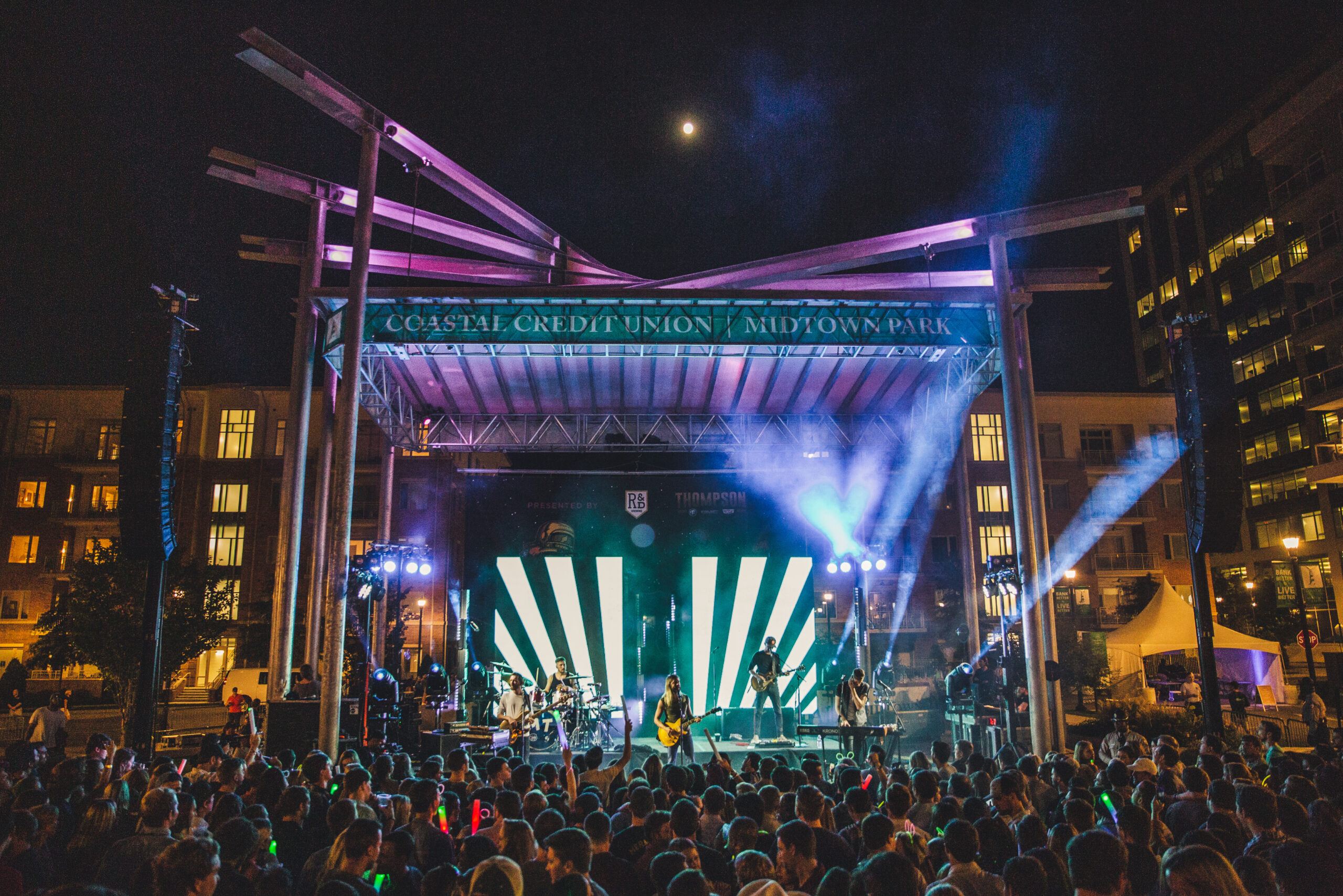 Moon Taxi lit up the Coastal Credit Union Midtown Park on Saturday night in Raleigh, NC for their full moon party. This wasn’t your typical show, as they brought with them three opening bands, making what felt like a mini-festival out of the day. Nashville-based Moon Taxi has played in Raleigh many times over the years and this most recent show was one for the books. They are a group that only gets better every time you see them and their live show is electrifying.