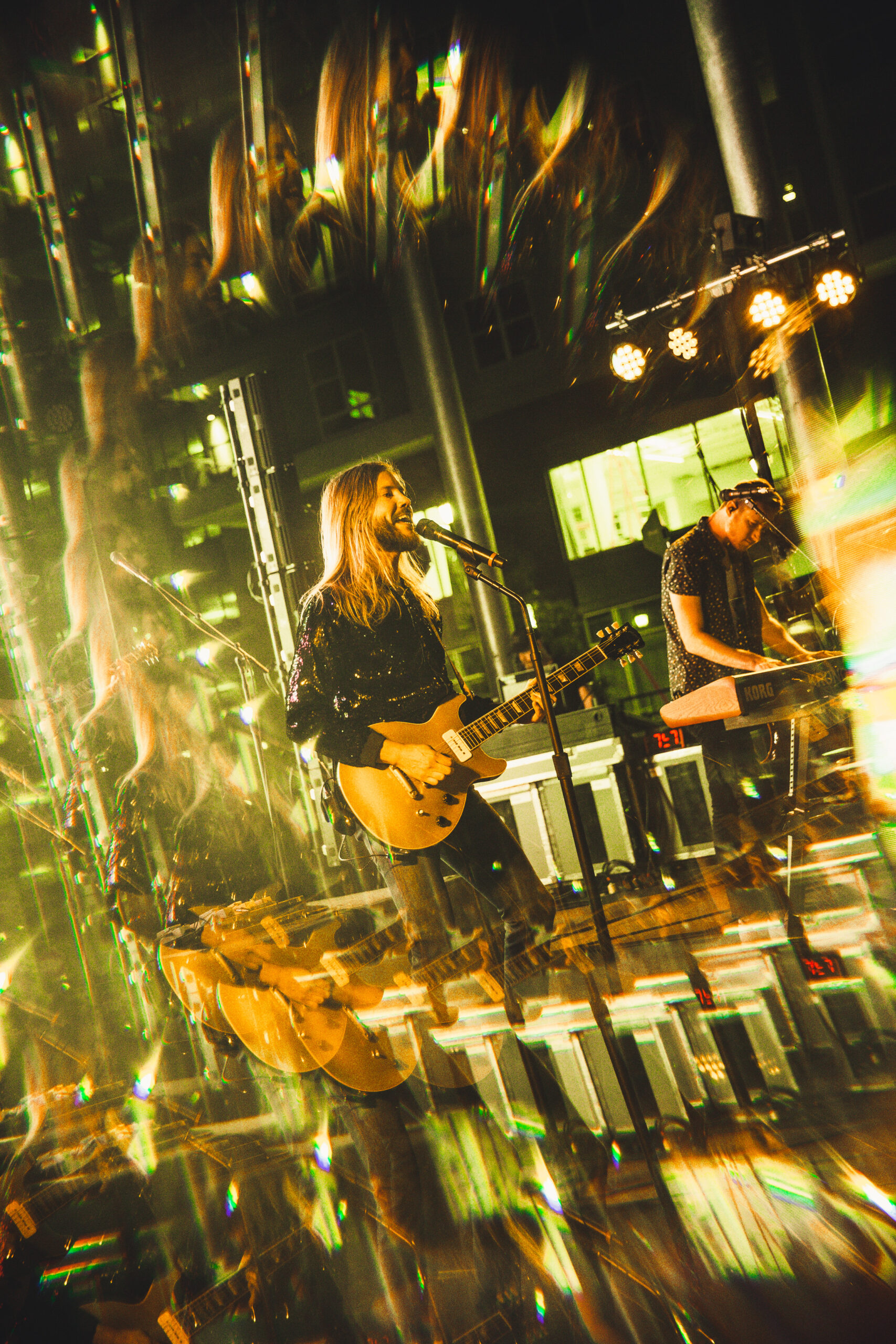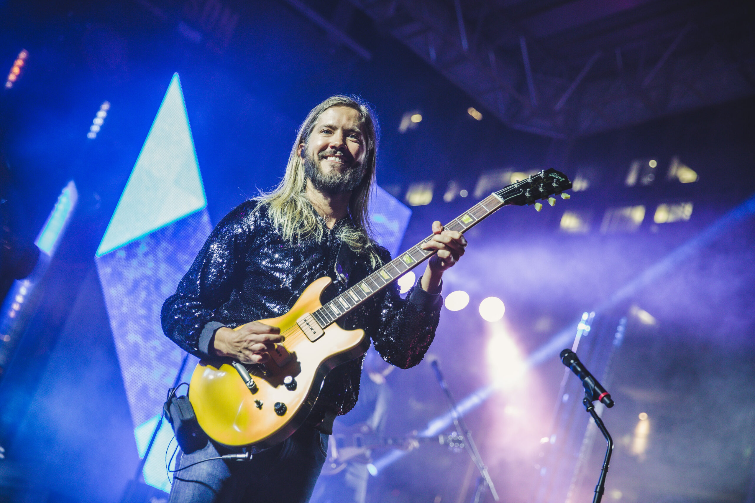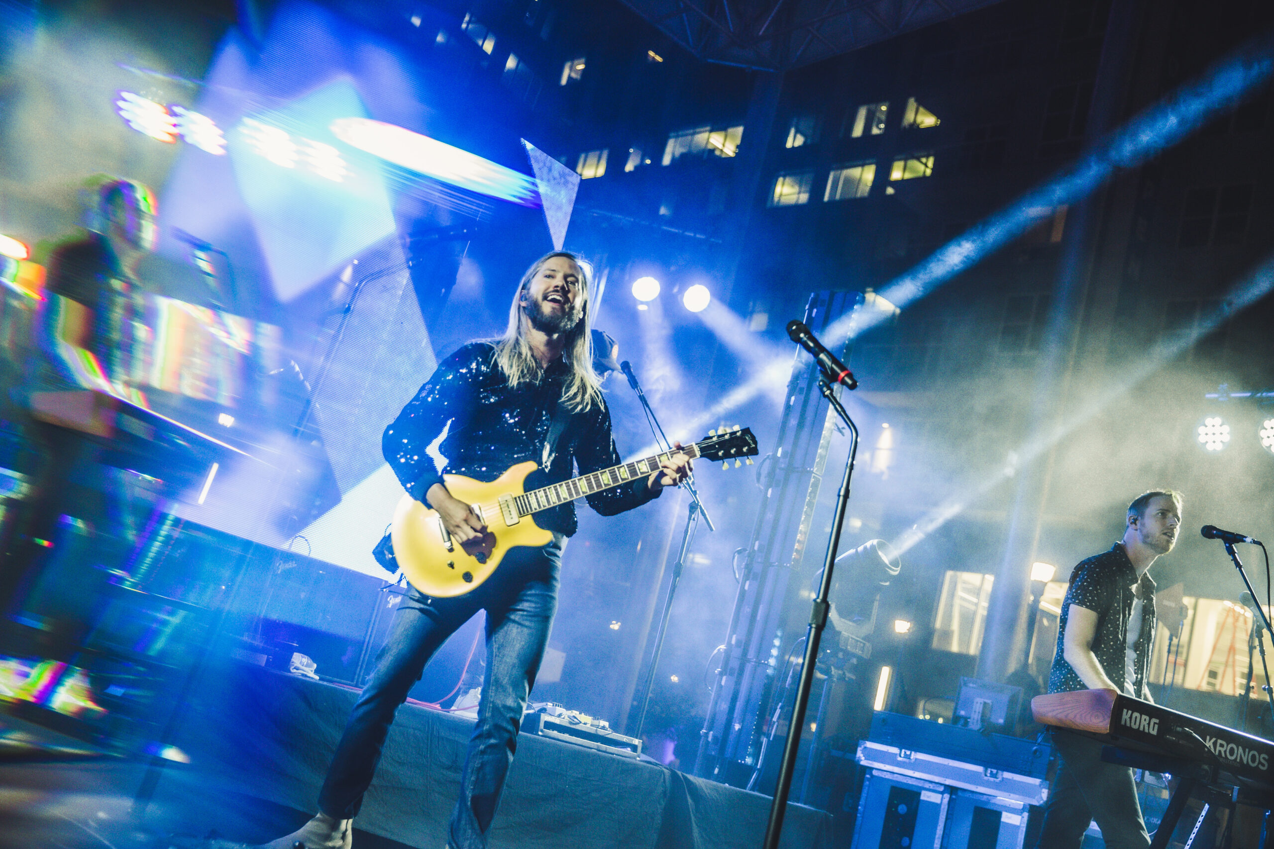 Fans gathered in masses on the lawn for the show and by the time Moon Taxi took the stage, the park was near full capacity. As the full moon shined bright directly above the stage, Moon Taxi played a mix of career-spanning tunes, including an encore of fan favorites “Morocco” and “Two High,” which featured four wacky waving inflatable arm-failing tube men in front of the stage. Other show highlights included a drum solo by Tyler Ritter to Billie Eilish’s hit song “Bad Guy” which inspired a dance party in the audience. In addition, Josie Dunne joined the band onstage for a nostalgic cover of “What’s Up?” by 4 Non Blondes which received a thunderous applause.