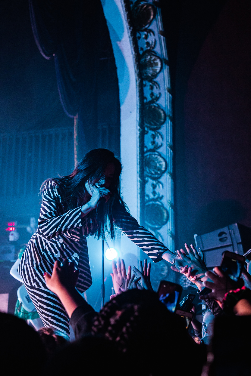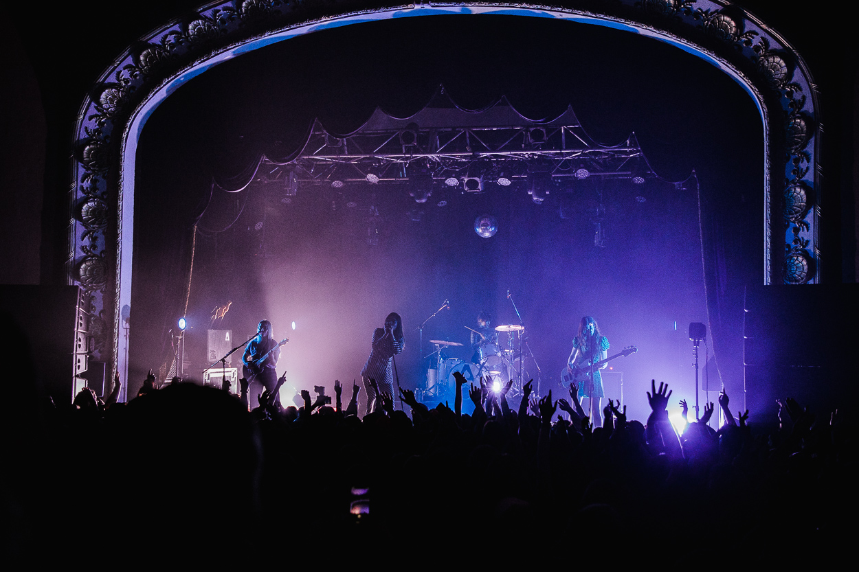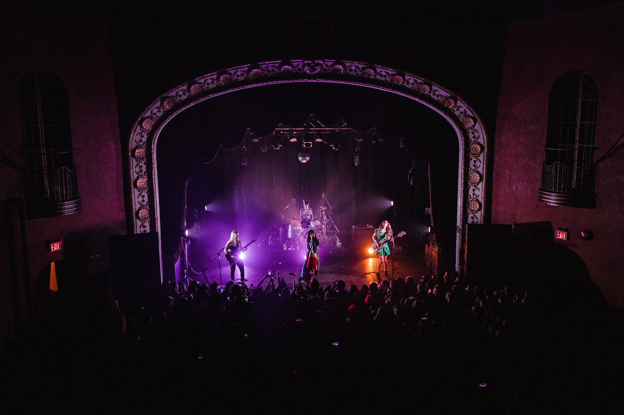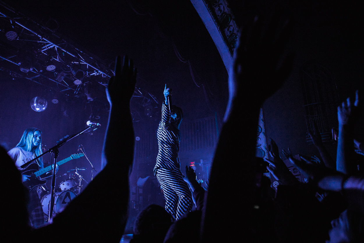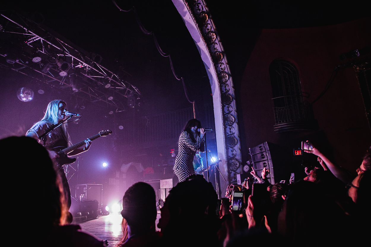 The Aces hit the stage next and played a killer set; fans were screaming the lyrics, jumping, and dancing throughout. Despite Cristal (vocals) and Katie (vocals, guitar) getting sick and having to cancel their previous show on the tour, the band still brought a ton of energy. Before the show, a group of fans handed out colored papers to hold in front of their phone lights during “Volcanic Love”, which lit the room up with the colors of band’s latest album cover. The Aces closed the show with “Stuck” and left the stage with the crowd begging for more: