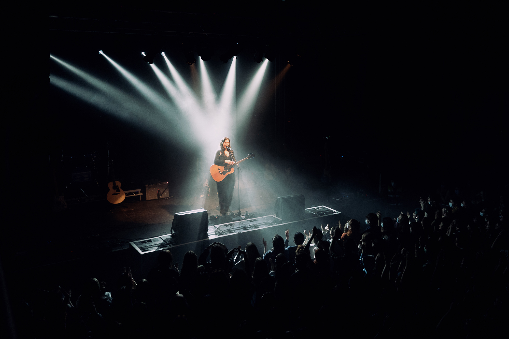 Lucy was encouraging all attendees to wear masks for the performance, after she had to cancel the first few UK dates after testing positive for covid. Mask-wearing is not common in the UK at present, but there was extremely high compliance at both venues, a probable reflection of the respect and love the crowd had for the performer.