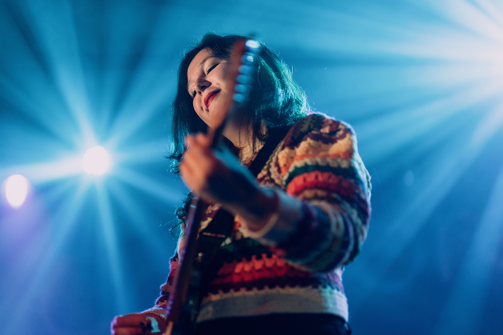 Home Video is Lucy Dacus’ third studio album, and she played ten of the songs during the set-list for the shows. This included the perhaps surprising use of ‘auto-tune’ for her song “Partner in Crime”, in keeping with the album version. She said this was her “pop-girl moment.” She also played old favourite “Night Shift” from her 2018 album, loved by the crowds with energetic sing-alongs, really special moments. Favourites included her latest release single “Kissing Lessons”, “Brando” from the new album, as well as a cover of Bruce Springsteen’s “Dancing in the Dark” played as the first song in her encore.