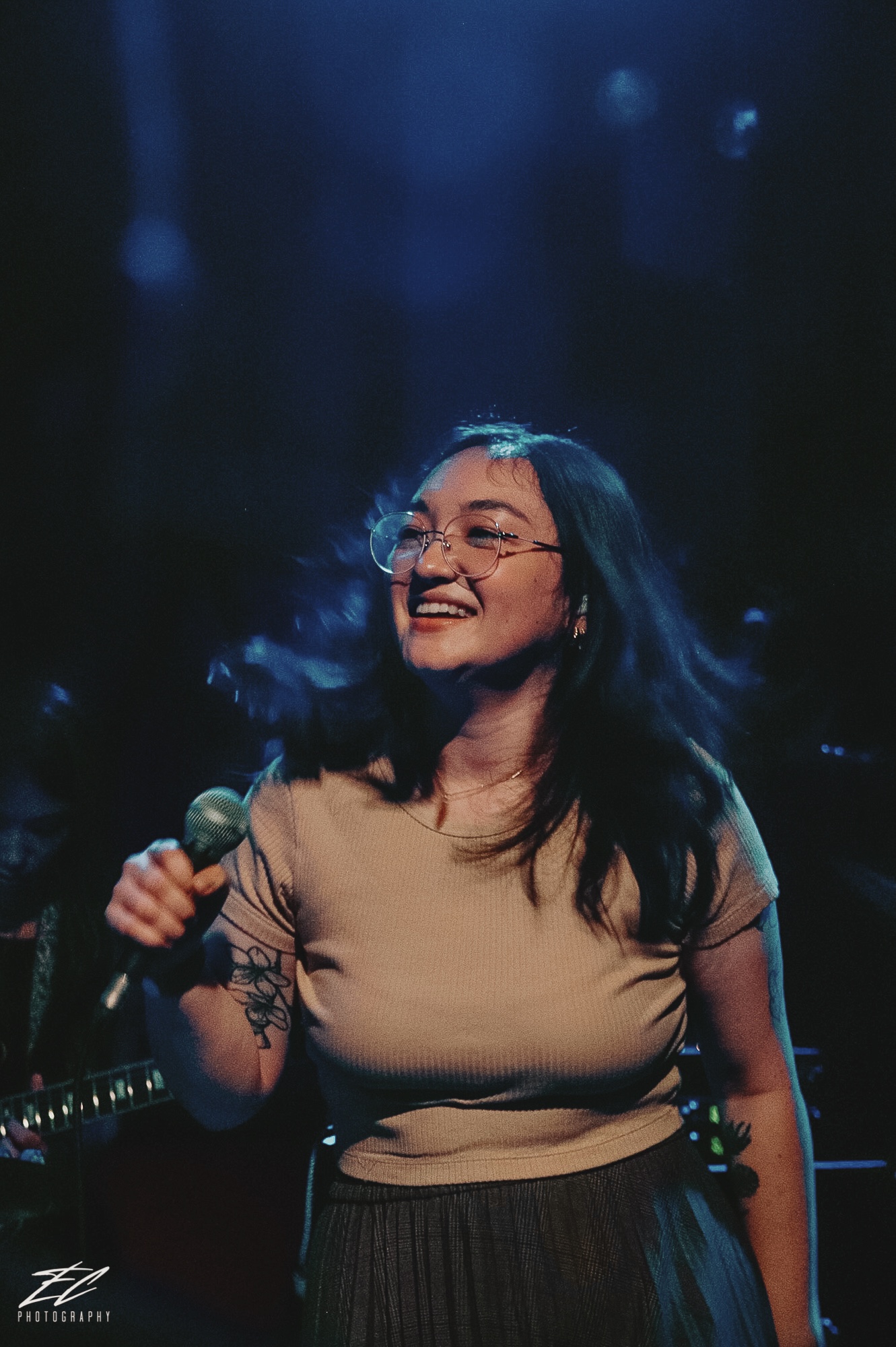After almost 2 years of no live shows, mxmtoon made her return on July 30th for an intimate show at New York’s Rockwood Music Hall, days before she would play Lollapalooza in Chicago to a crowd of over 8,000. This NY show was special though as it was sold out to a room full of eager fans ready to see Maia for the first time since the pandemic started. For many this was their first show back, so it was even that more special.