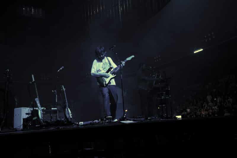 A short while after 9PM struck, the stage went completely dark as Parker and his supporting tour members walked up on stage with their instruments ready. Hearing the familiar tune of “Apocalypse Dreams,” the arena erupted into loud cheers as the lasers and lights amped up the energy further. However, the floating lights would half obstruct the view for people in the stands and terrace areas since they would hover just above the band’s heads. Thankfully, the bars of stage lights would rotate and tilt throughout the show, creating interesting angles and an atmosphere of dreamlike wanderlust.