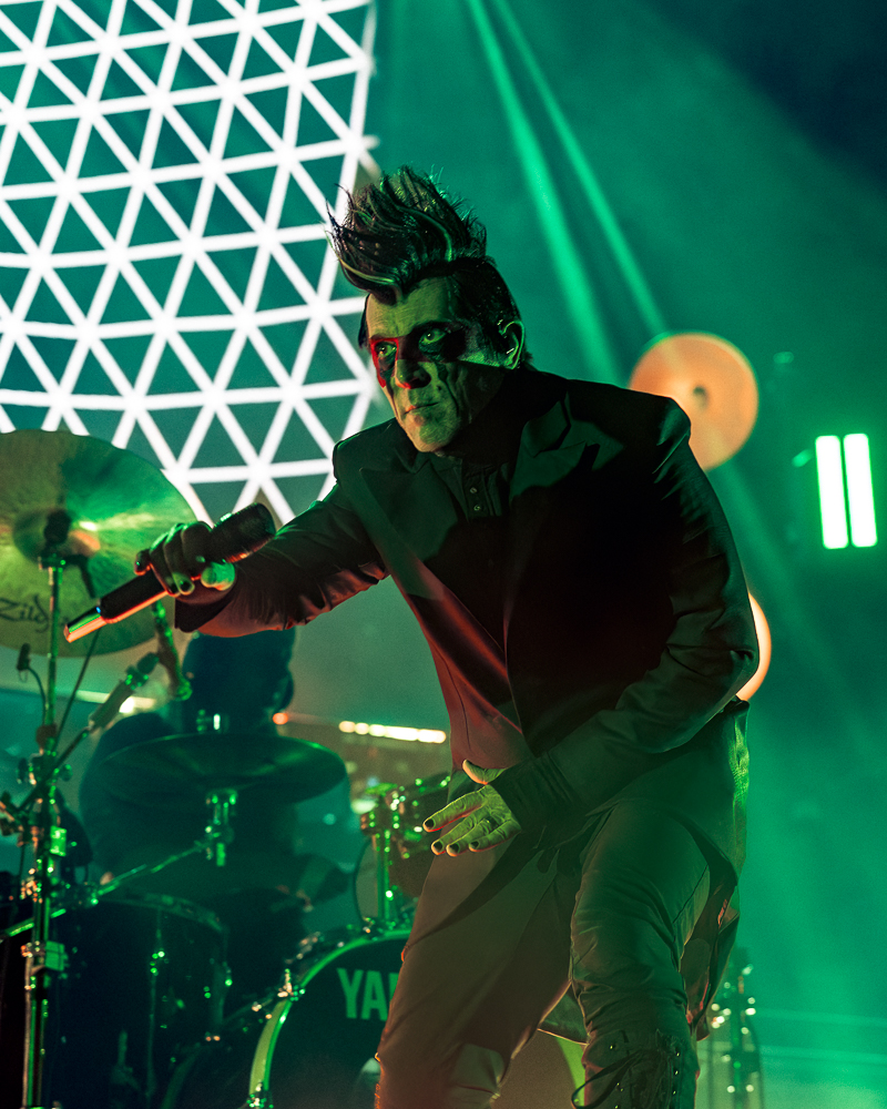 When it was time for Puscifer to take the stage, the lights dropped and a brief skit played on the screen having the crowd to agree to a no phones experience, which really made the show more personal as everyone was focused on the stage and not the back of their screens recording. After the video played and the lights went down, you could tell this wasn’t going to be a normal night…Normal Isn’t. The stage setup, the visuals, even the way the band carried themselves, it all had that signature offbeat Puscifer vibe. Kind of sci-fi, kind of sarcastic, kind of “what am I even watching right now?” in the best way.