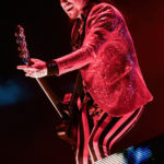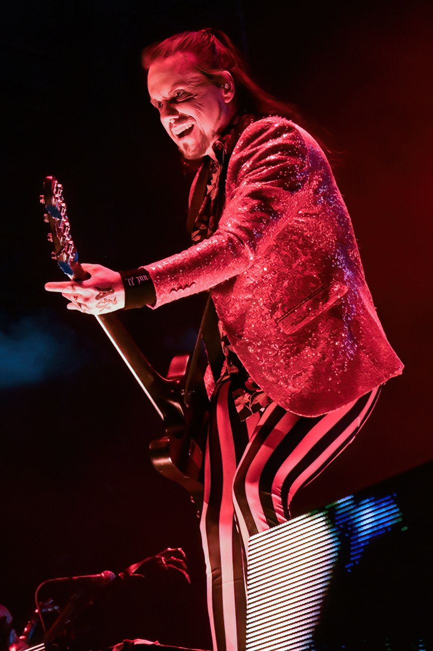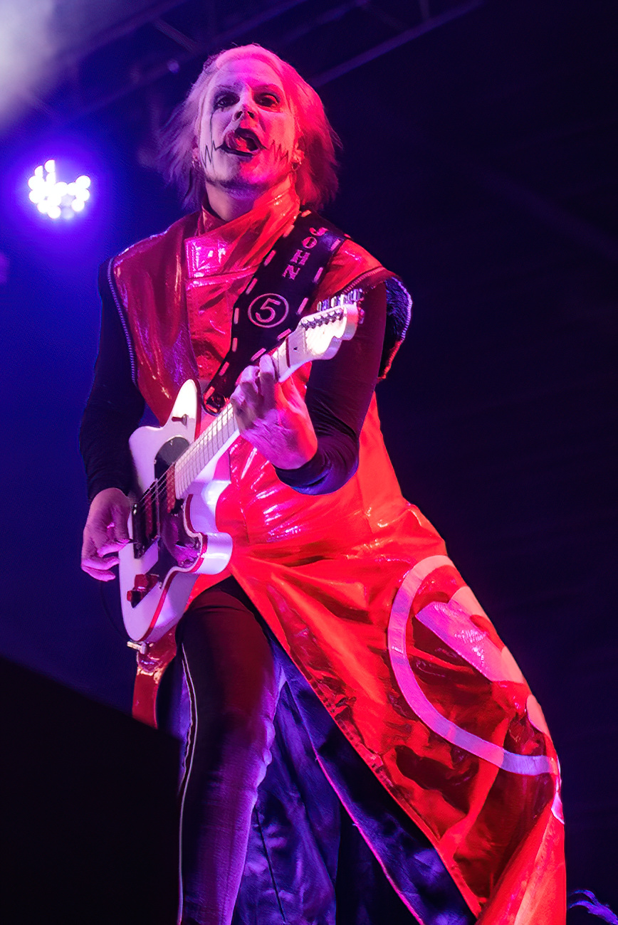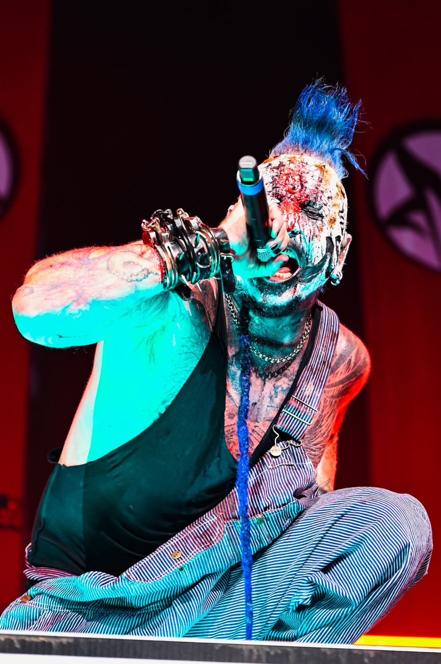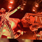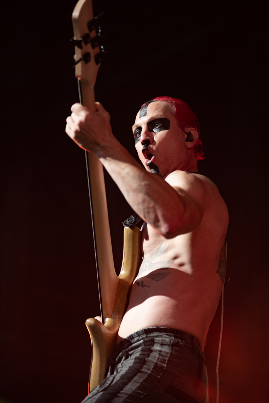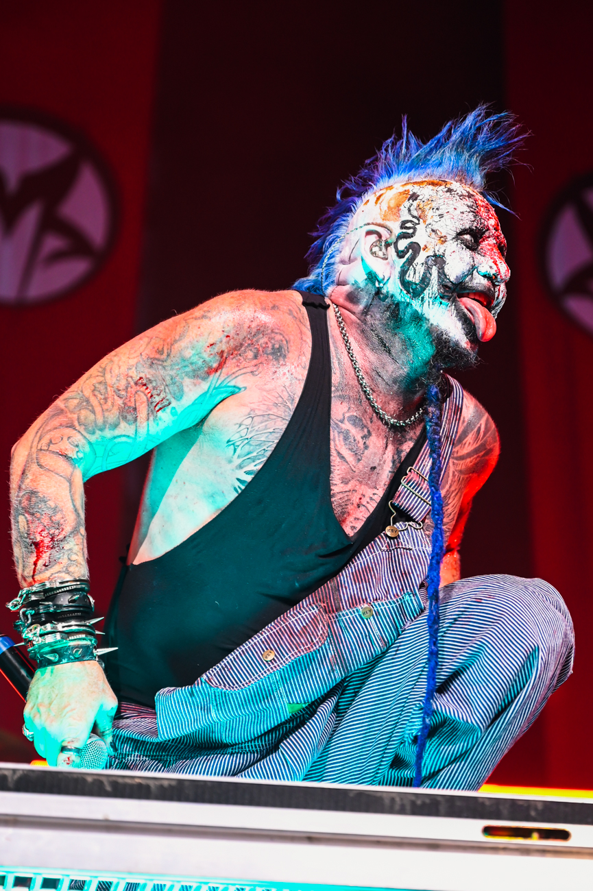 What can be said about Rob Zombie that hasn’t already been said? The man knows how to perform. Between the visuals on the stage, full of classic horror movie clips, guitarist John 5, who is a walking work of art, and bassist Piggy D, the entire show is just stimulation overload. Zombie comes emerges from atop a tall scaffolding to the crowd roaring before breaking into the opening song “The Triumph of King Freak”. Every song has its special visual, with a giant vampire coming out for “Meet the Creeper”. And he gives a peek at his newest movie “The Munsters” before ending the night with “Dragula”. If you have never seen John 5 perform, you are missing out. Besides being a visual feast, he is a genius guitarist. Bassist Piggy D is non-stop energy.