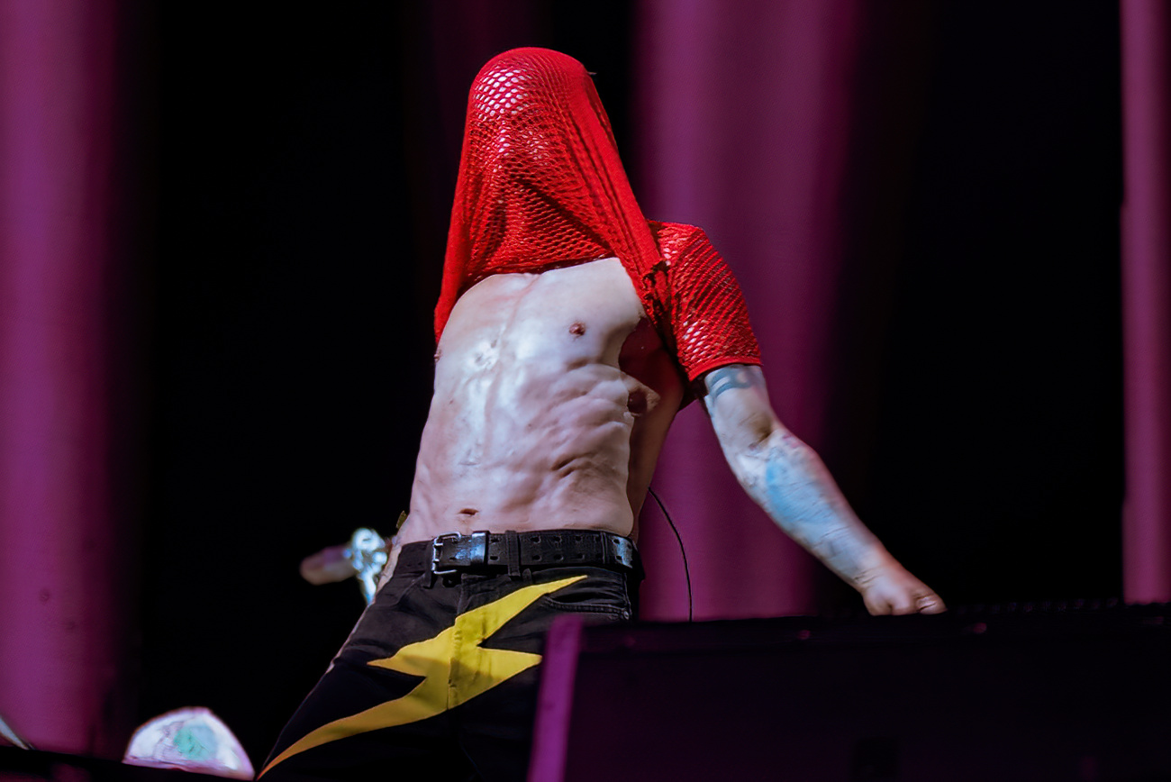 After an hour and a half weather delay, bass impresario Thundercat took to the stage to open the evening. Standing in front of an impressive cat head statue, he let his talent shine. Having to play a shortened set didn’t deter him from showing off his skills.