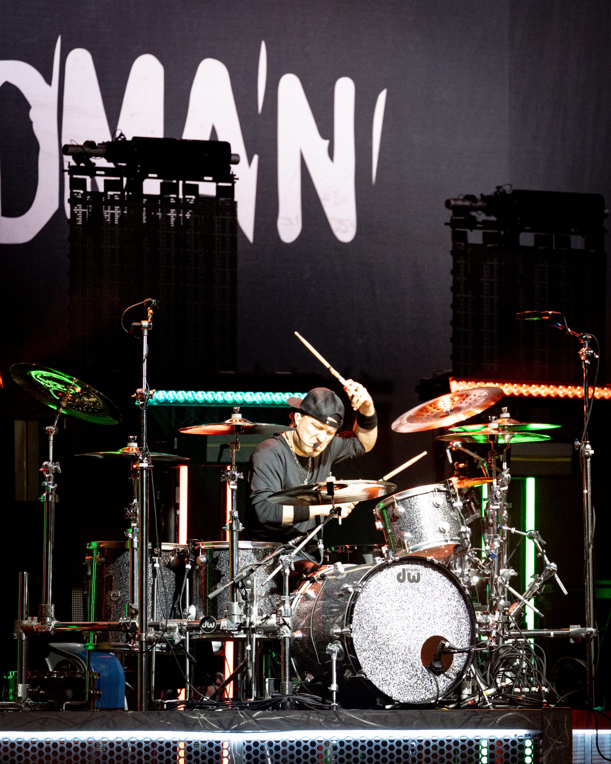Following Saint Asonia, local favorite Theory of a Deadman took the stage, opening with the title track from their new album, “Dinosaur.” The audience was immediately captivated as the band played a series of hits, with vocalist Tyler Connolly’s crooning voice leading the way. Surprises came in the form of an impressive cover of Leonard Cohen’s “Hallelujah” and brief renditions of “Paradise City,” “Walk,” and “Song 2.” The set concluded with the crowd-pleaser “Bad Girlfriend,” leaving the arena eagerly anticipating the headliner.