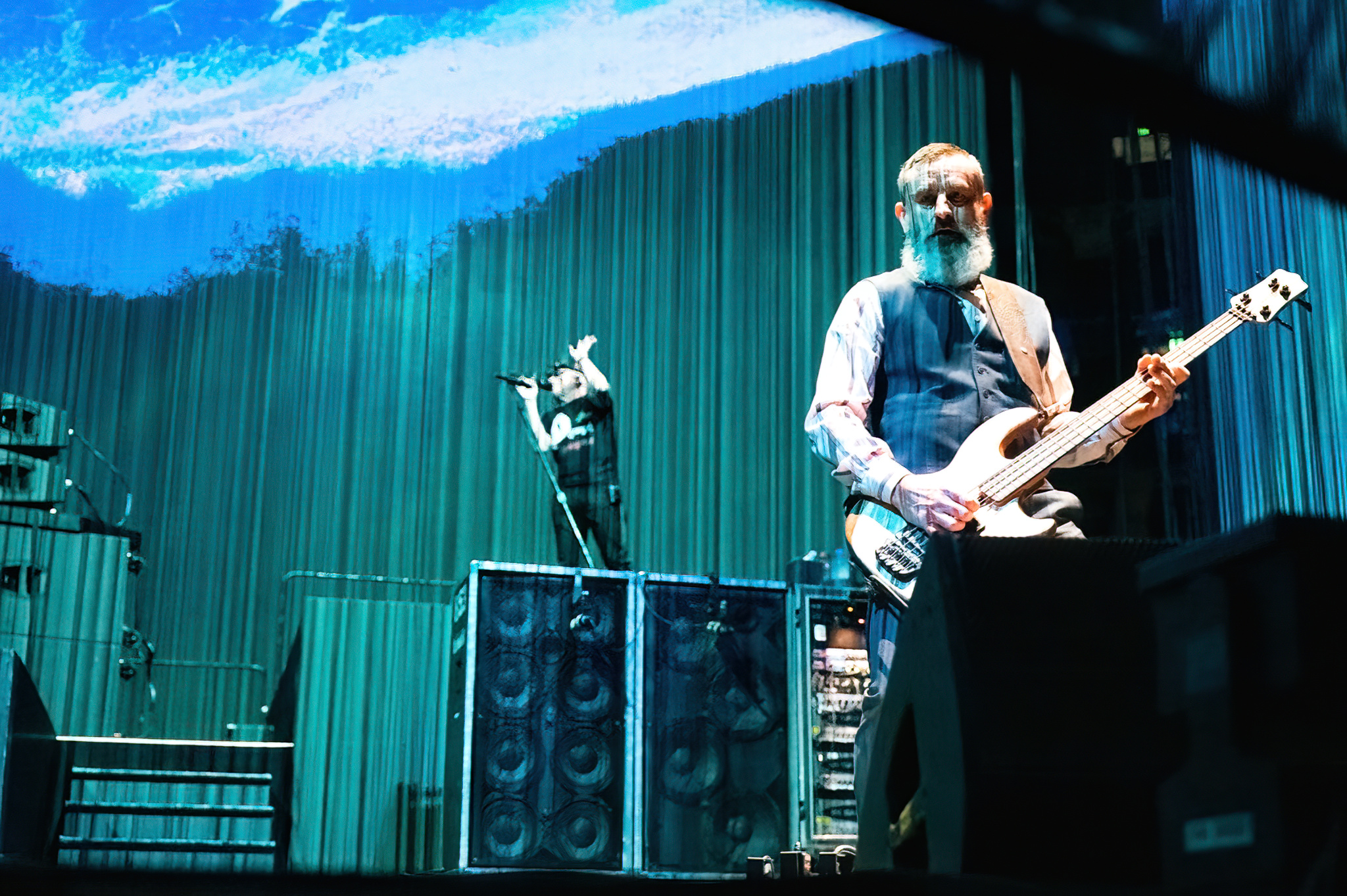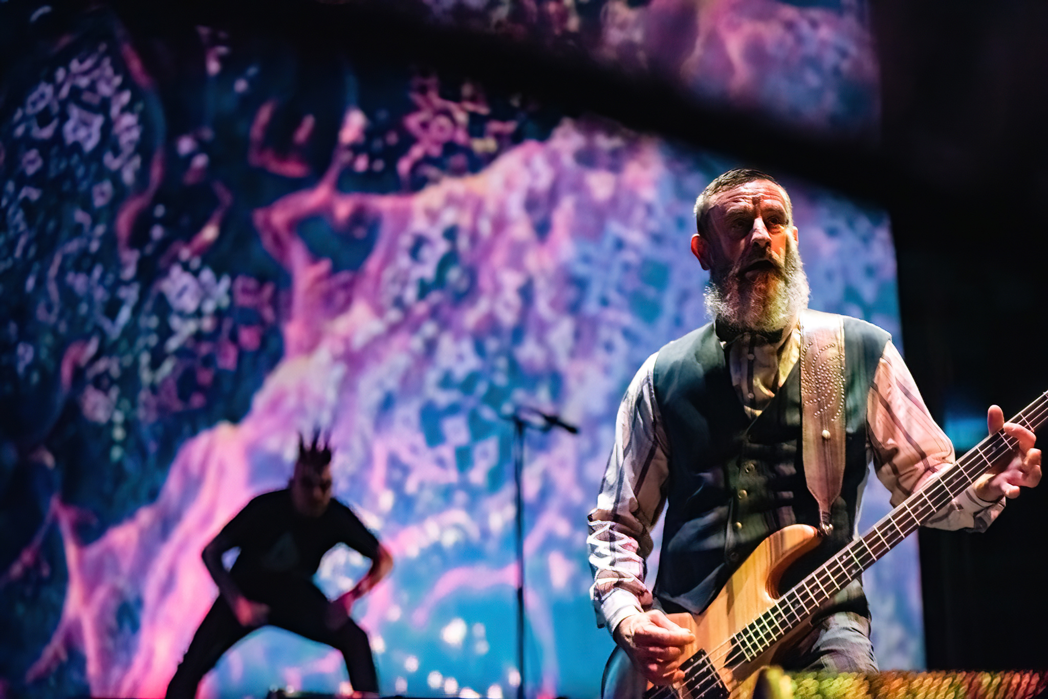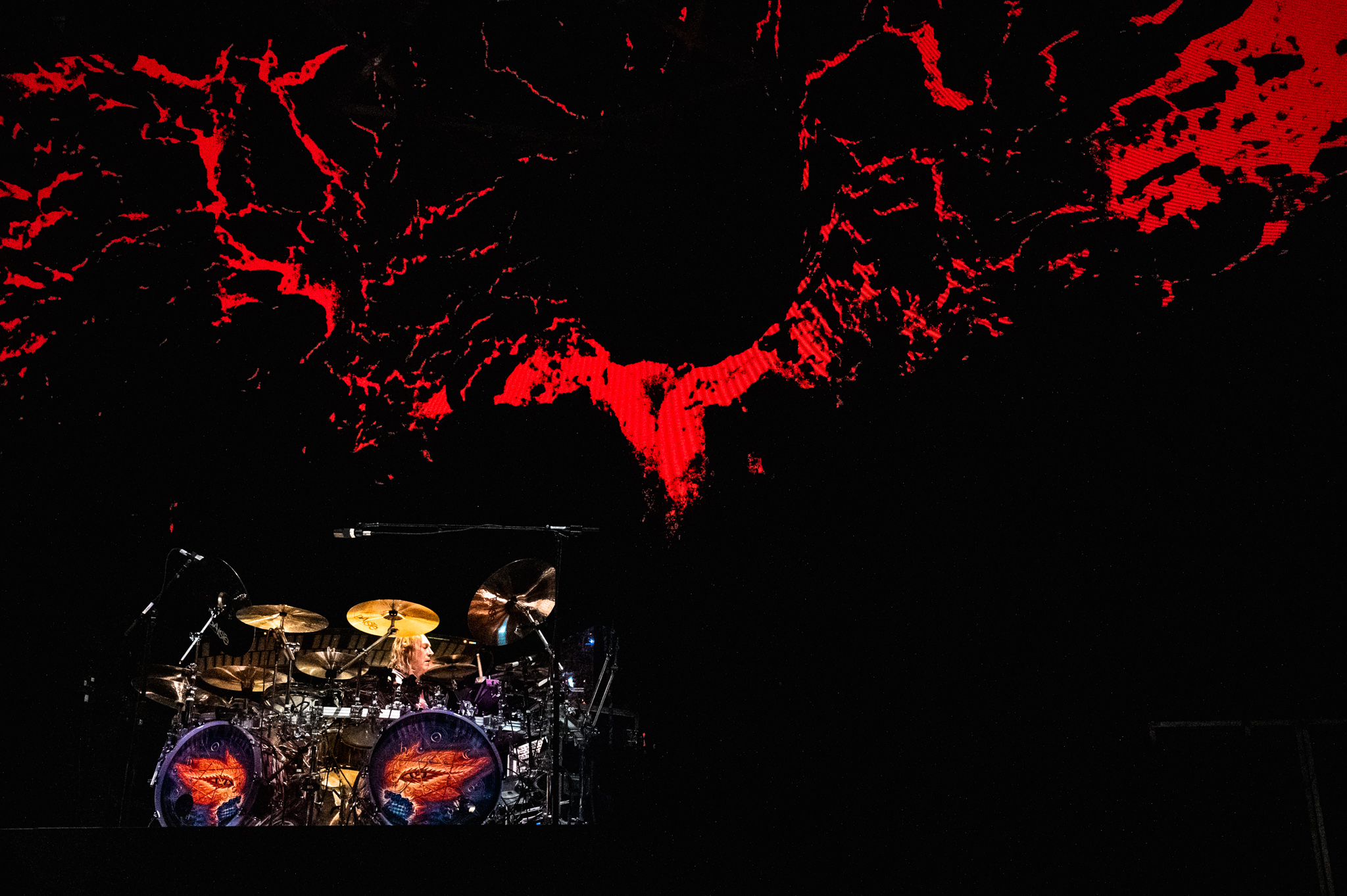 Blonde Redhead opened the evening with an ethereal, moody set; a perfect way to start an evening with Tool. After a brief intermission, where a fringed curtain was put around the parameter of the stage, drummer Danny Carey took to his kit to start “Fear Inoculum”. The crowd began to get louder as Adam Jones and Justin Chancellor took their positions and the shouts were almost deafening when Maynard took the stage, staying on a platform in the far corner of the stage (a position he maintained throughout the entire concert).