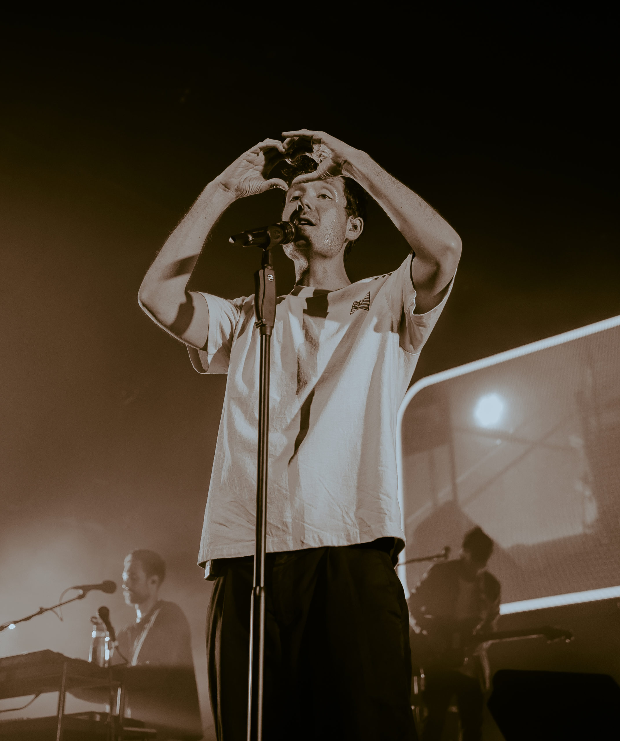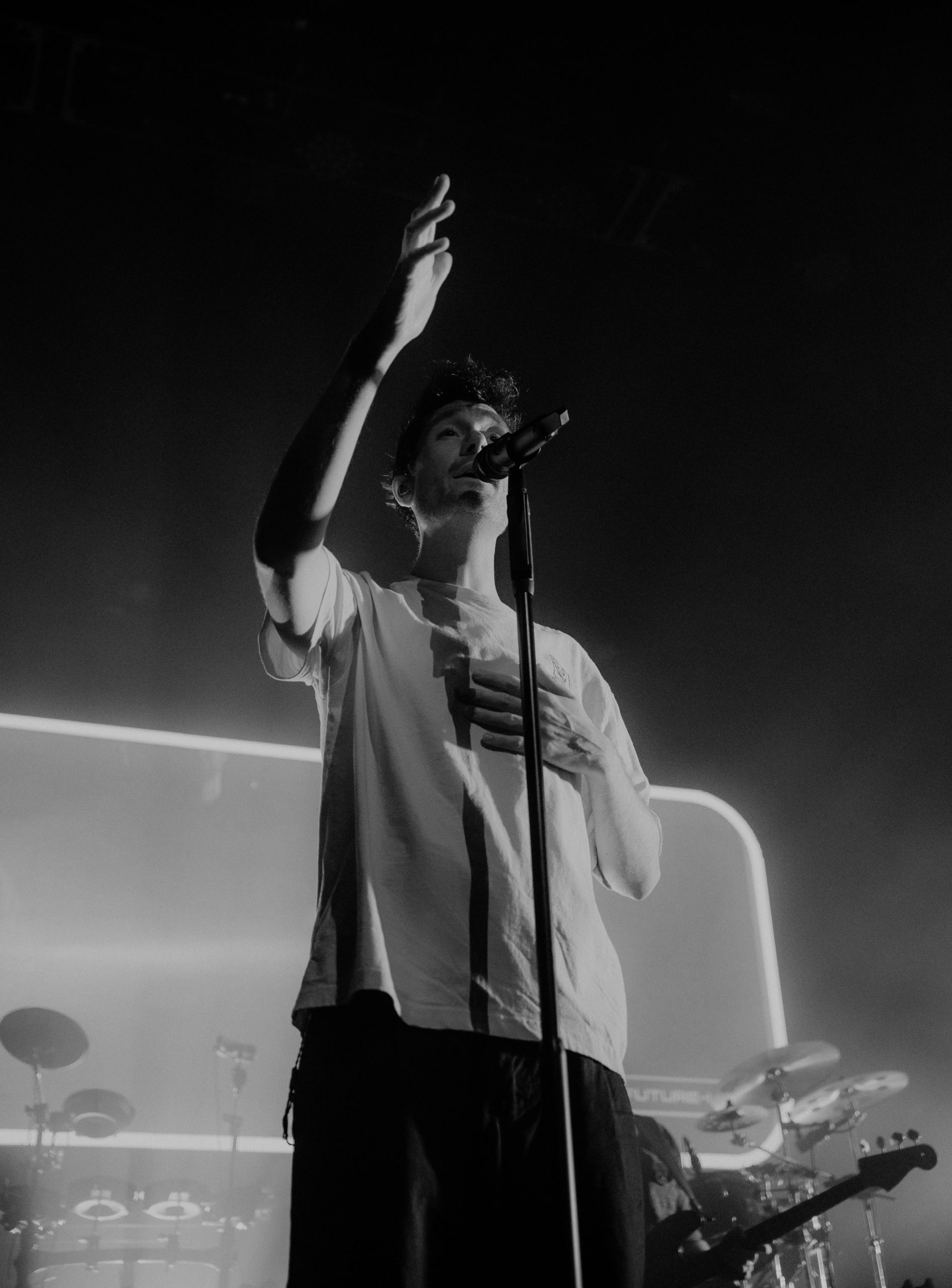 Bastille entered the stage in front of a bright LED screen with interesting visuals in line with the tech-heavy, sci-fi themes of their new album. The band began their set with “Stay Awake?” from Give Me The Future and then jumped into “Distorted Light Beam”, the opening track to GMTF. The fans on the barricade and throughout the venue were singing every word to each song, clearly very happy to see their favorite band after so much time away from touring. Bastille is a band that certainly knows how to put on an incredibly engaging concert, with a mix of songs from all four of their albums but also interludes between songs with sounds from various films and other media. As much as it is a live music concert, it is also a true performance. They closed off their show with “Pompeii”, their single from 2013 that brought the band global recognition, before performing “Hope For The Future” and “Shut Off The Lights” as the encore songs.