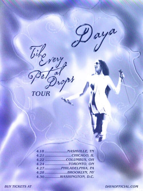 Daya will be hitting the road this April on the Til Every Petal Drops Tour starting April 18. The tour will make stops in Nashville, Chicago, Columbus, Toronto, Philadelphia, Brooklyn and Washington, D.C.
