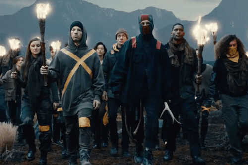 “Overcompensate” shows Clancy and Torchbearer leaving Voldsoy and educating the citizens of Dema about the Banditos, recruiting rebels marked with red tape instead of yellow. At the very end of the video, however, we realize that Clancy was not actually there and was instead seizing a citizen. We learn that both Clancy and Torchbearer had just arrived back on the continent, now with more support from their fellow rebels.