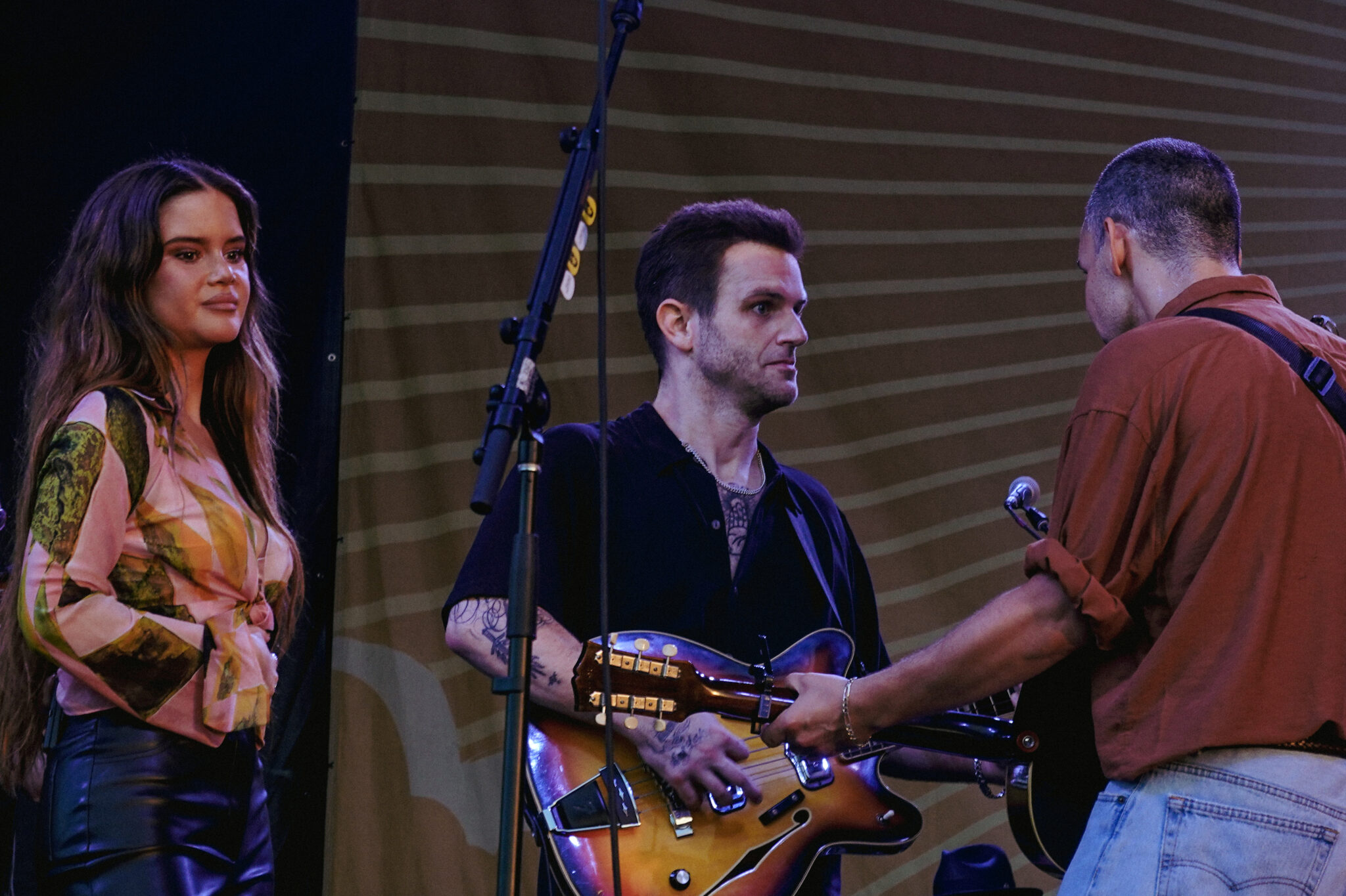 Antonoff followed with a solo rendition of Bleachers’ hit “I Wanna Get Better,” introducing it by revealing he originally wrote the song “as a folk song but produced it really loud to hide behind it.” The stripped-down performance offered a rare, tender moment in the set — a quiet pause before the energy surged once again. That momentum came with their next guest, Maren Morris, who joined Antonoff for a powerful cover of Bleachers’ deep cut “Don’t Go Dark.” Despite facing canceled flights and weather delays, Morris made it to Newport just in time to deliver a high-octane performance that lit up the stage.