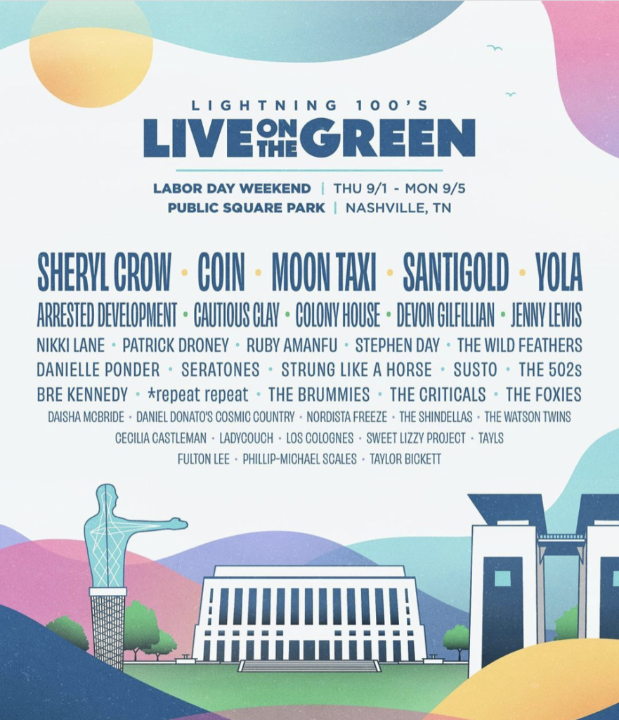 Nashville’s annual Labor Day weekend music festival has returned! After a few years of quiet, Public Square Park will once again be vibrating with music… and for FREE! Hosted by local radio station, Lightning 100, Live On The Green will feature astounding performances from artists you love, vendors, drinks, and more. The 5 day festival will be held September 1-5th and will include two stages for the 38 artists on the lineup. With headlining performances from COIN, Moon Taxi, Santigold, Yola, and Sheryl Crow, the attendees of the festival are in for an amazing weekend!