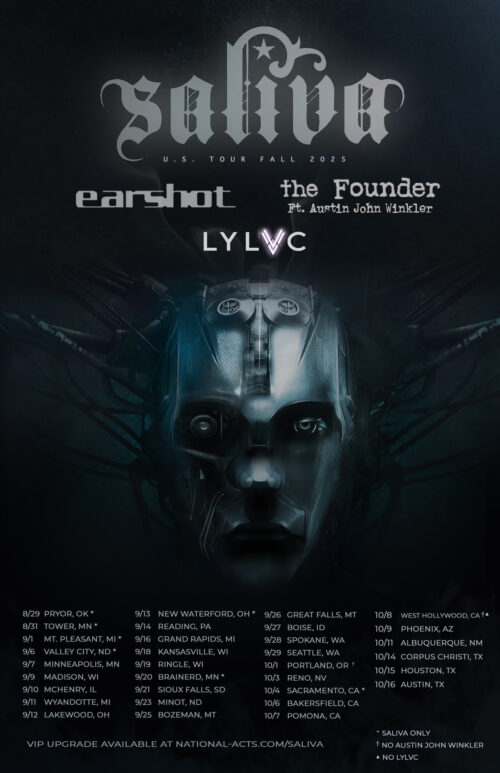 Hard rock veterans Saliva are gearing up for a powerful run of U.S. shows this fall, joined by Earshot, The Founder featuring Austin John Winkler, and LYLVC on select dates. The tour launches August 31 in Tower, Minnesota, following a festival stop at Rocklahoma on August 29.