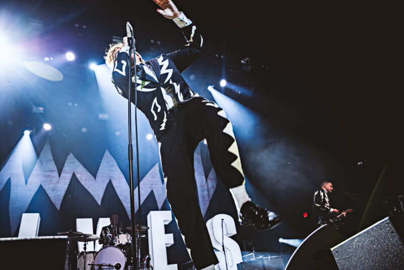 The energy in the room was scorching hot as fans waited for The Hives to take the stage. As the lights went down, five letters spelling “H I V E S” lit up, and the band slowly took their spots, facing away from the crowd. Frontman Pelle Almqvist took over, and the room erupted immediately with “Bogus Operandi”, one of the many new tracks that were heavily featured throughout the night. Almqvist wasted no time and got close to the fans soon after, coming down a set of steps promptly set up in the middle of the stage for him to comfortably move as he pleased. Jumping on the barricade and singing right into peoples’ faces, the charismatic singer managed to bring the rest of the band’s energy up close and personal.