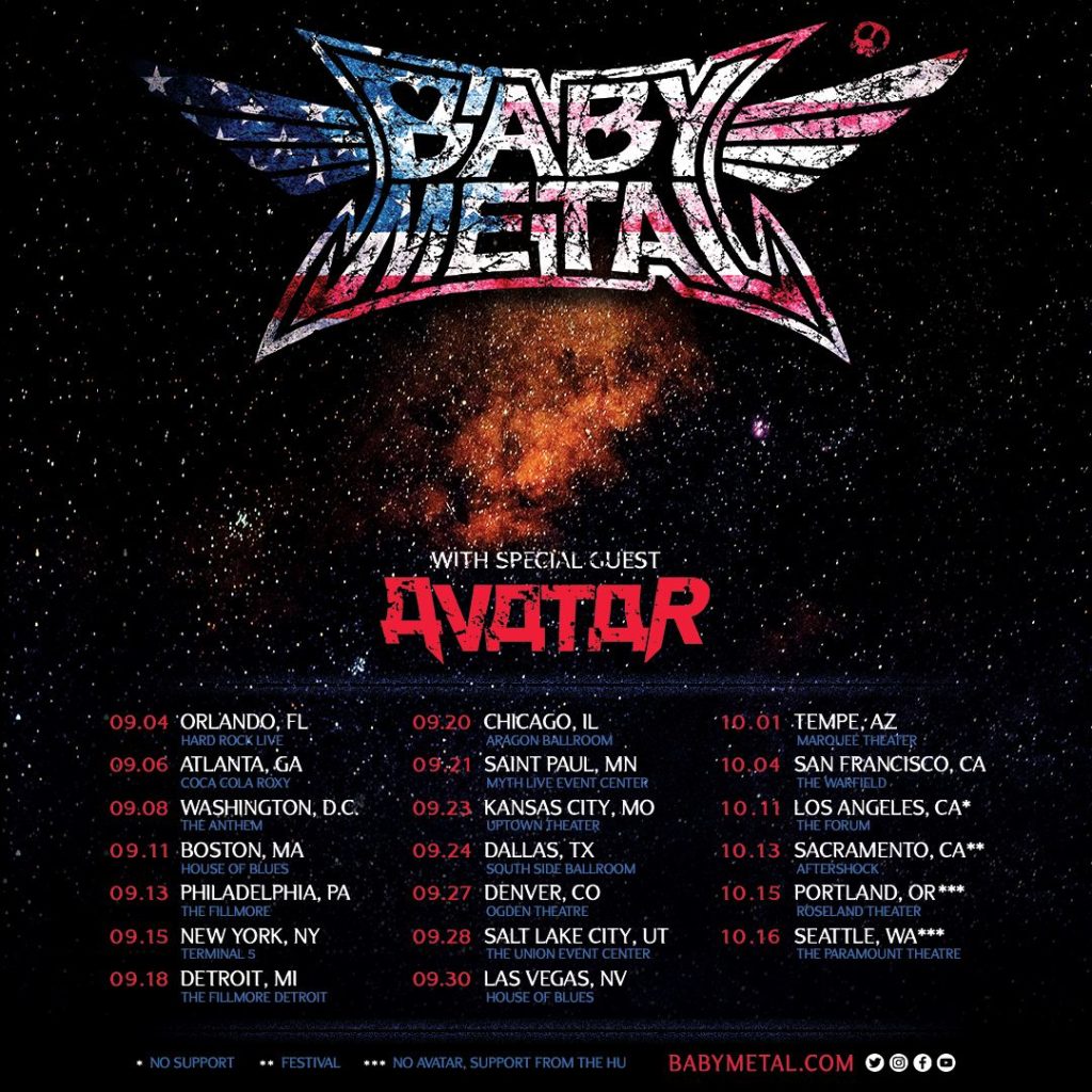 BABYMETAL 2019 US Tour Dates with Avatar: