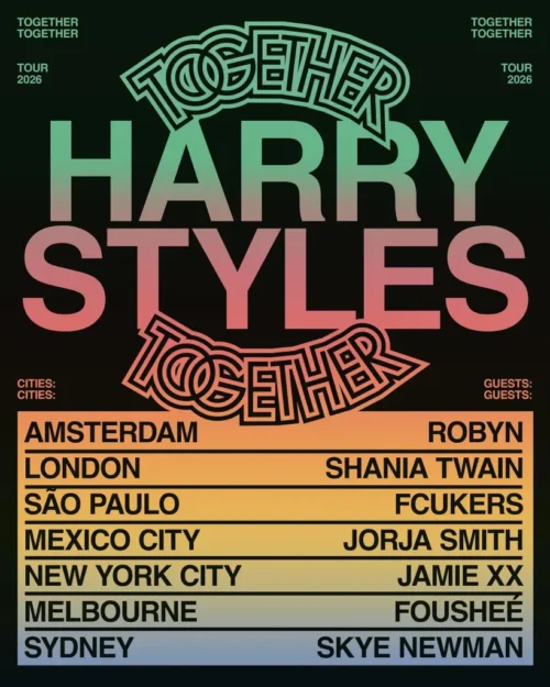 Harry Styles is officially back and returning to the stage this year with his Together, Together 2026 Tour. He will begin in Amsterdam for a 6-night residency, bringing the tour to a close with 2 nights in Sydney.
