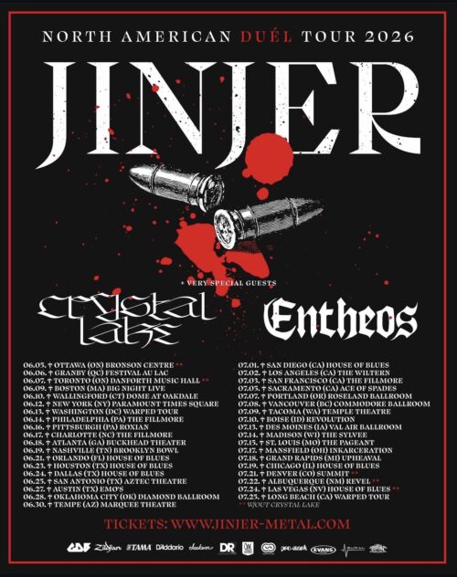 Jinjer will kick off their North American tour in Ottawa, Ontario, on June 5 at the Bronson Centre and close at Warped Tour in Long Beach, California, on July 25.
