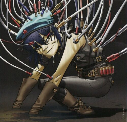 Noodle is still thought to be either dead or missing, with Murdoc saying that he searched the crash site of the “El Mañana” video, only finding bits of hair and skin samples. He uses these DNA pieces to create a robot clone of Noodle, which he names Cyborg Noodle. Cyborg Noodle doesn’t speak, is experienced with firearms. She would be their guitarist for their new album, and also be Murdoc’s bodyguard. Russel is nowhere to be found, despite numerous contact attempts from Murdoc. Leaving him no choice but to build a drum set from Russel’s scraps to perform percussion for the album.