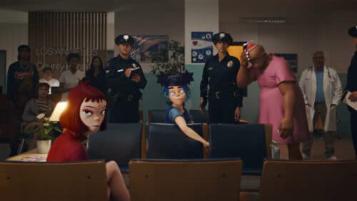 Suddenly, the cops surround the scene and take the band away in handcuffs, except for Murdoc, who sneaks away. In the video for “Cracker Island,” the 3 of them get taken to a Los Angeles hospital, where they are medically examined and questioned. Noodle is on a payphone, handcuffed, desperately trying to get everything under control. In the video, Murdoc reunites with Moon Flower, they share a kiss, and she then turns to dust. She turned to ash after spending a night with Murdoc watching her old film “The Hills Are Hungry”, and he keeps her ashes in an urn to remember her. 2-D turns to the camera and sings along with the song, “Nothing More To Say.”